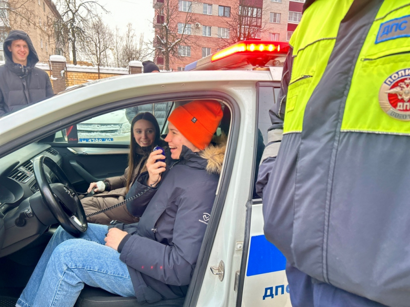 Особенностями своей работы поделились также сотрудники Госавтоинспекции. Студенты получили возможность посидеть за рулем патрульного автомобиля, что добавило практического опыта к их теоретическим знаниям. Участники акции стали свидетелями и процедуры проверки инспекторами ДПС проезжавших транспортных средств.