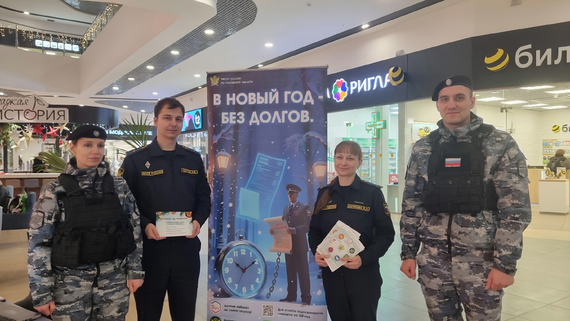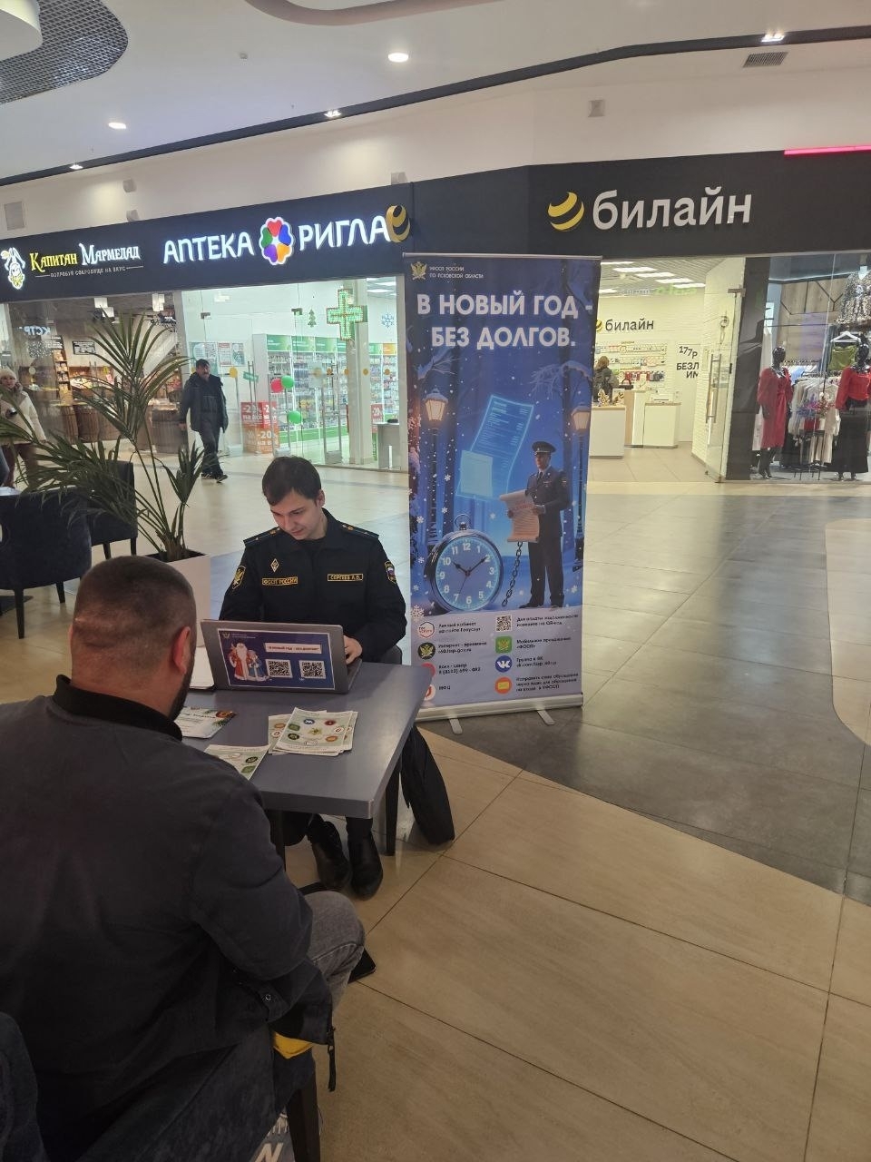 Посетителям торгового центра раздавали листовки, в которых напоминали, почему важно своевременно оплачивать задолженности и не откладывать решение финансовых вопросов на следующий год. Сотрудники службы разъясняли, что наличие неоплаченных долгов может повлечь за собой ограничения — от запрета на выезд за границу до ареста счетов.