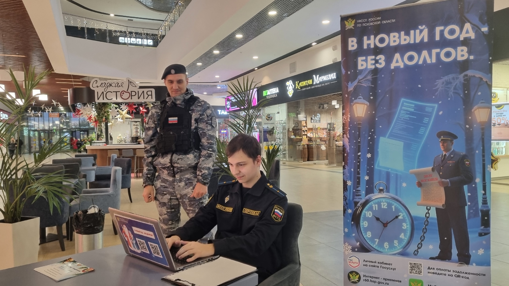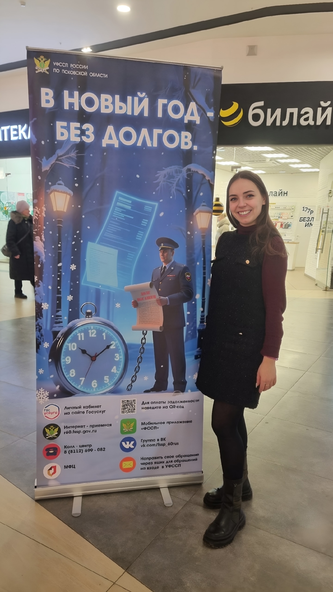 В торговом центре Fjord Plaza судебные приставы Псковской области провели информационную акцию, приуроченную к предновогодним и рождественским праздникам.