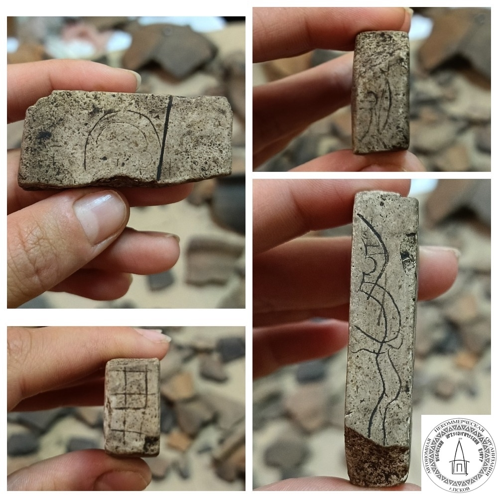 Еще одна интересная находка – целый двусторонний гребень. Изделие выполнено из костного материала моржа, слона или мамонта. Такой вывод можно сделать исходя из необычной структуры кости. Специалисты Псковского археологического центра отметили, что в наших широтах чаще всего двусторонние цельные гребни прямоугольной или слегка трапециевидной формы, традиционной с XI века и до позднего Средневековья, изготавливались из плотного рога лося. Гораздо реже встречаются экземпляры, выполненные из экзотических привозных материалов – моржового бивня, слоновой кости, кости мамонта, самшита.