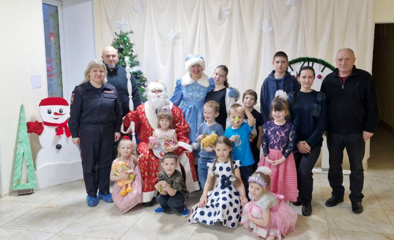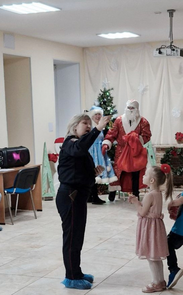 Но когда позволила ситуация полицейские не могли не порадовать ребят долгожданным визитом Деда Мороза и Снегурочки. В роли этих сказочных персонажей выступили заместитель председателя Общественного совета Сергей Карпухин и ведущий специалист по связям с общественностью направления информации и общественных связей УМВД России по городу Пскову Елена Иванова.