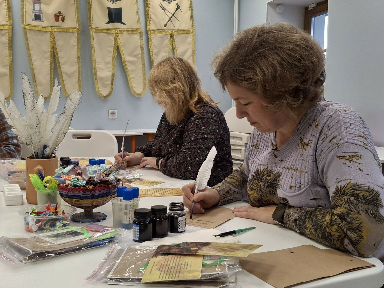 В музейной мастерской царила атмосфера творчества и вдохновения. Гости музея погрузились в атмосферу XIX века, создавая праздничные открытки и изучая старинные правила их дарения. Мастер-класс позволил участникам не только проявить свои художественные способности, но и узнать, как правильно подписывать открытки пером и чернилами.