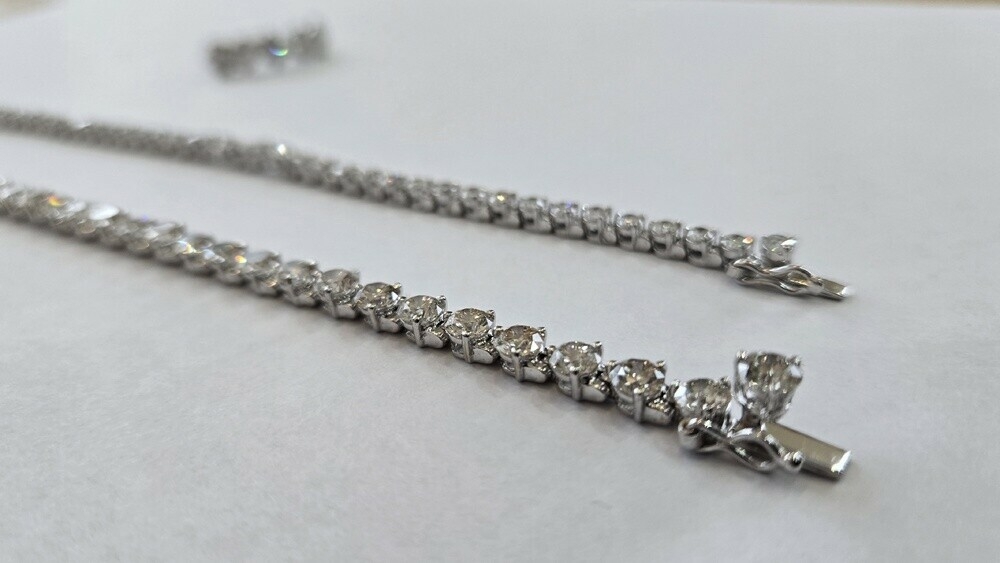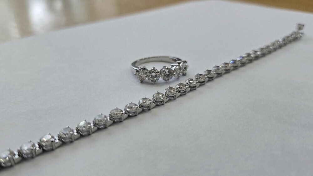 Экспертиза установила, что украшения новые и изготовлены из белого золота 750 пробы. Браслеты инкрустированы 121-м бриллиантом общей массой 25,41 карата, а кольца – 10-ю бриллиантами массой 6,56 карата.