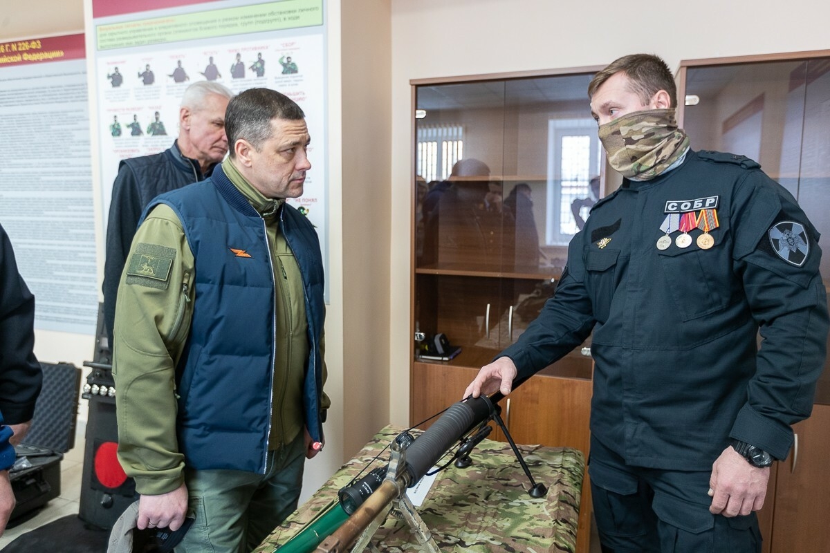 В расположении Управления Росгвардии Губернатор осмотрел автомобильную технику, стоящую на вооружении СОБР «Гепард», ознакомился с образцами оружия подразделения и трофеями, захваченными в ходе СВО.