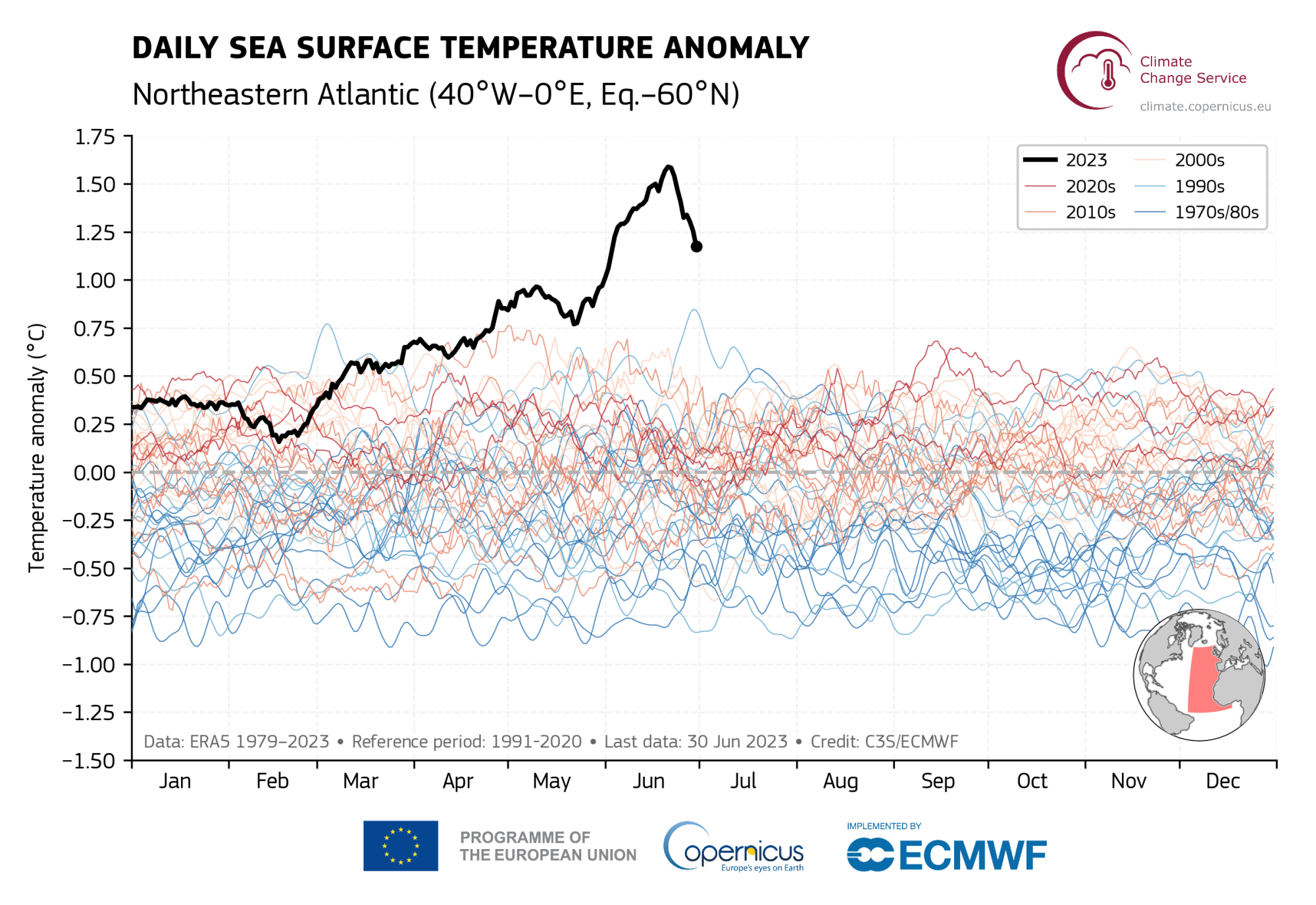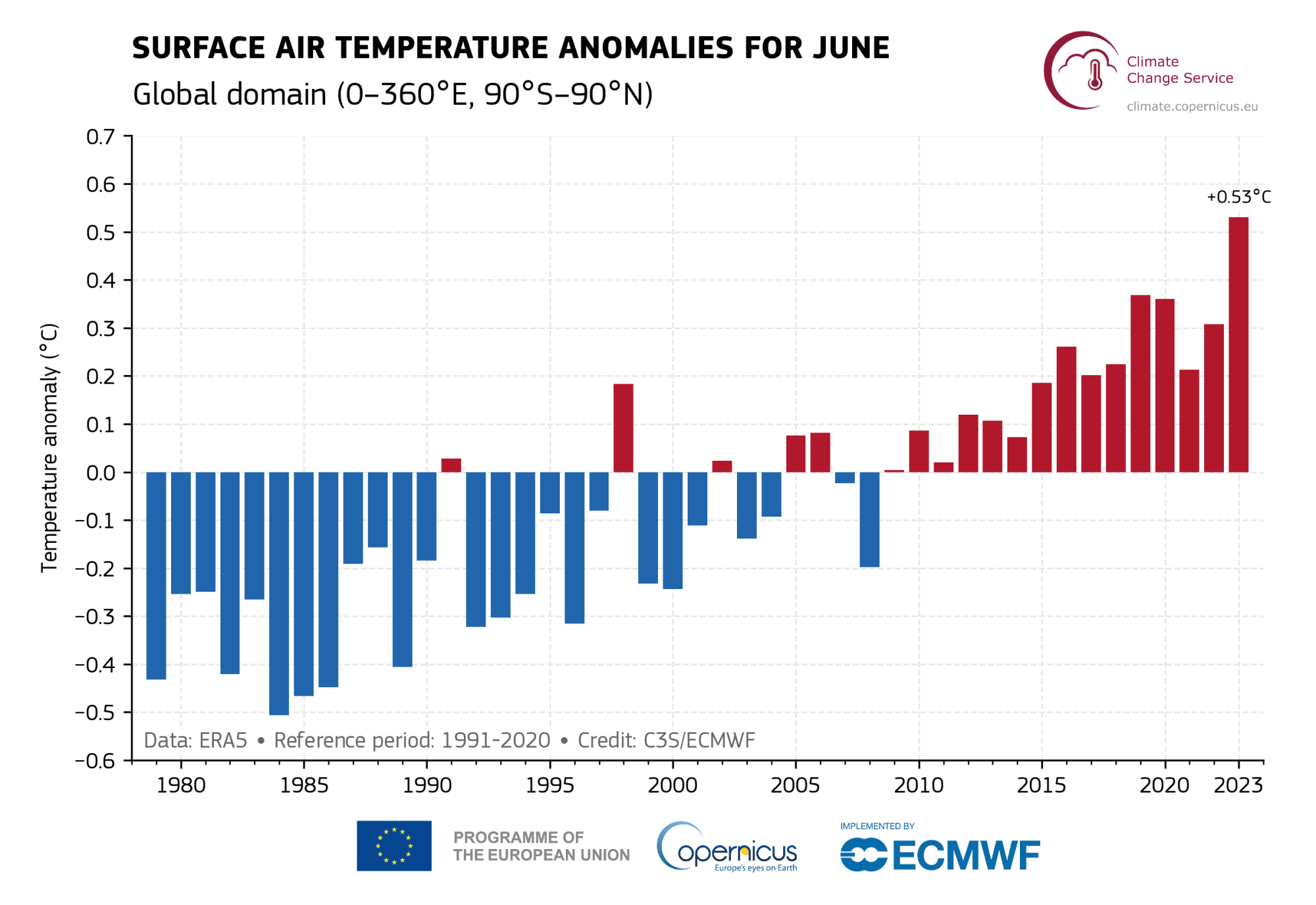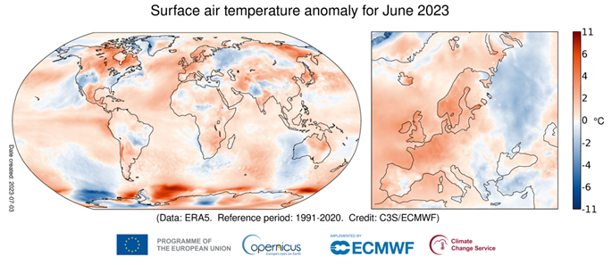 Необычайно высокие для июня температуры были зафиксированы на северо-западе Европы. Значительно теплее, чем обычно, было в некоторых областях Канады, США, Мексики, Азии и восточной Австралии.