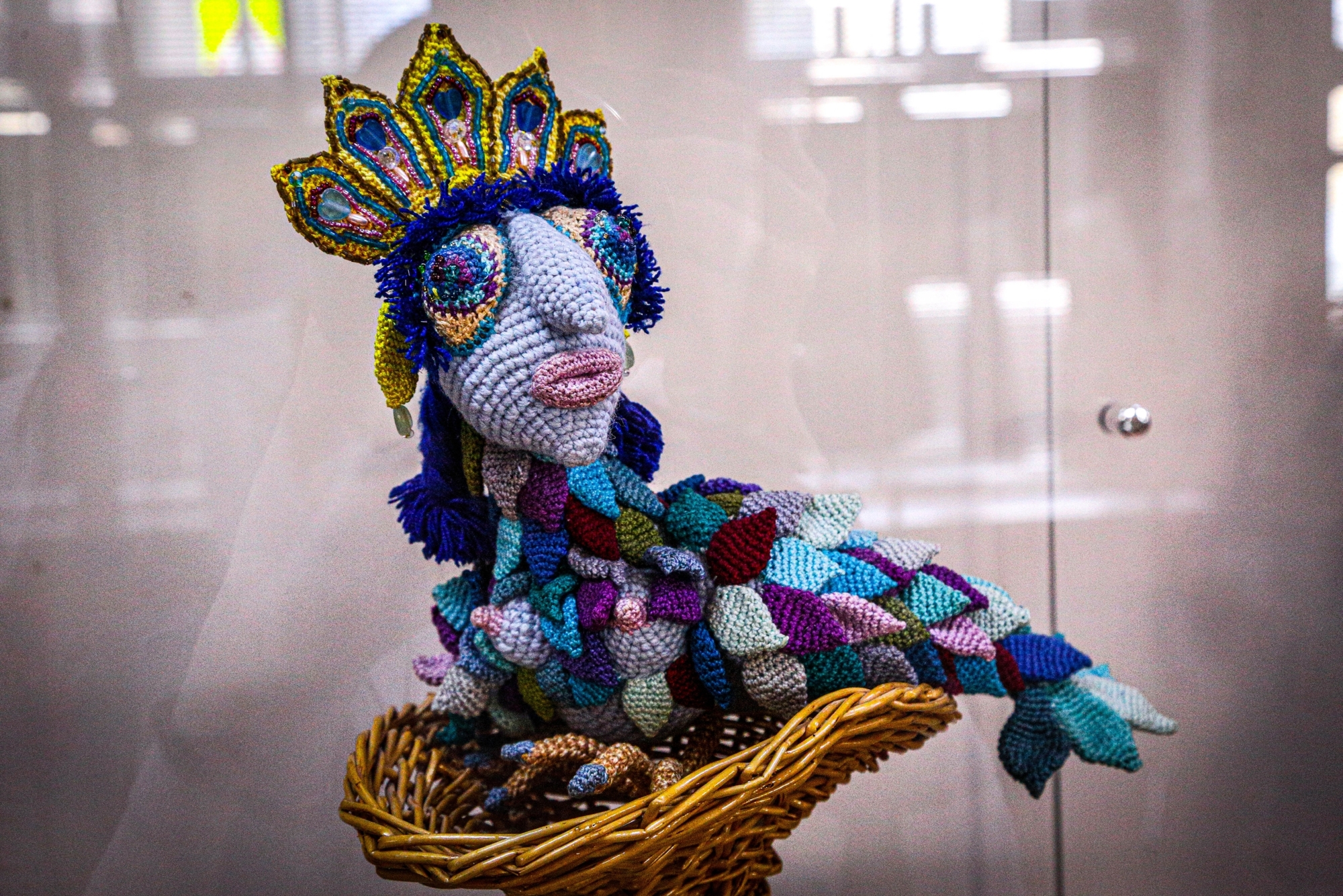 Мастер предлагает вниманию псковской публики собрание собственных работ разных лет, созданных в период с 2008 по 2026 годы: одежда и аксессуары, панно, арт-объекты, авторская кукла, декоративные фрагменты. Все работы были выполнены «на заказ» или в подарок друзьям, что-то придумано и воплощено в жизнь к выставкам «Заполярье» и «Русский Север XII». Экспонаты в таком составе собираются впервые и вряд ли когда-нибудь соберутся вновь. Вязание крючком, фриформ (свободное вязание), текстильный коллаж, аппликация на ткани, смешанная техника — это всё о работах Алексея Макарова, которые всегда находятся в центре внимания публики. Всё связано без схем и эскизов, по-живому, как того просили душа и крючок Мастера.