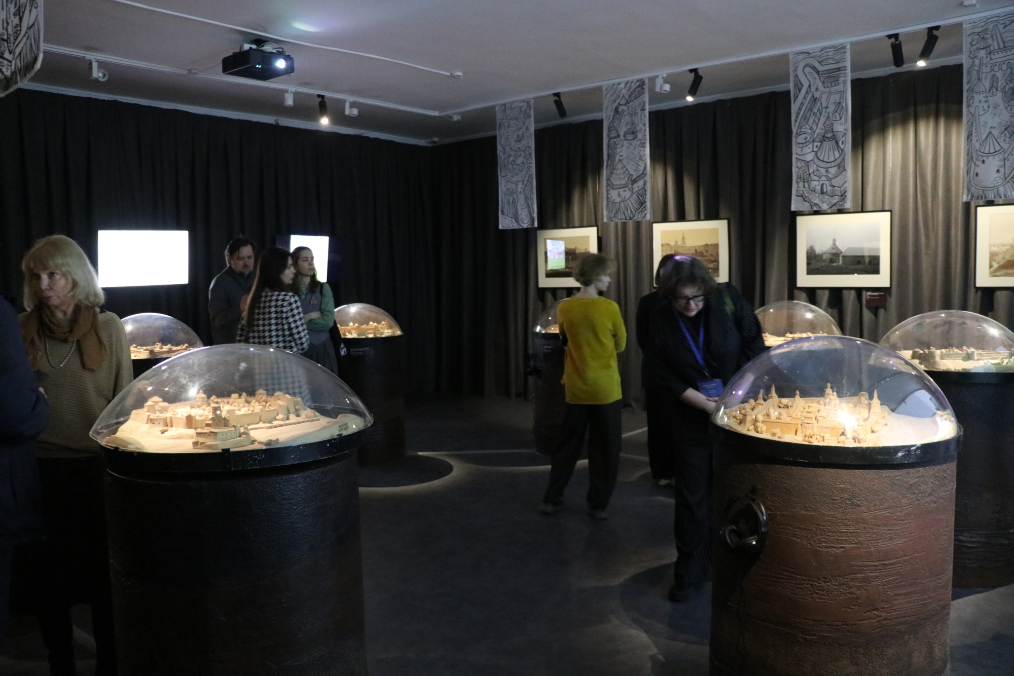 С такой темой выставки петербургские музейщики не обошли вниманием и Псковский кром: специально для выставки Псковский музей предоставил материалы по Кремлю и макету Пскова XVII века, которые можно увидеть на экранах в пространстве.