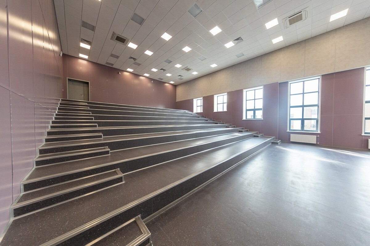 Двухэтажное здание общей площадью более 8 тыс кв. метров оборудовано лифтами, системами доступа маломобильных групп, охранной и пожарной сигнализацией, системами видеонаблюдения и контроля доступа. Выполнен большой объем работ по устройству коммуникаций. Полностью отделаны и подготовлены к оснащению учебные аудитории, кабинеты, актовый зал, музей и столовая.