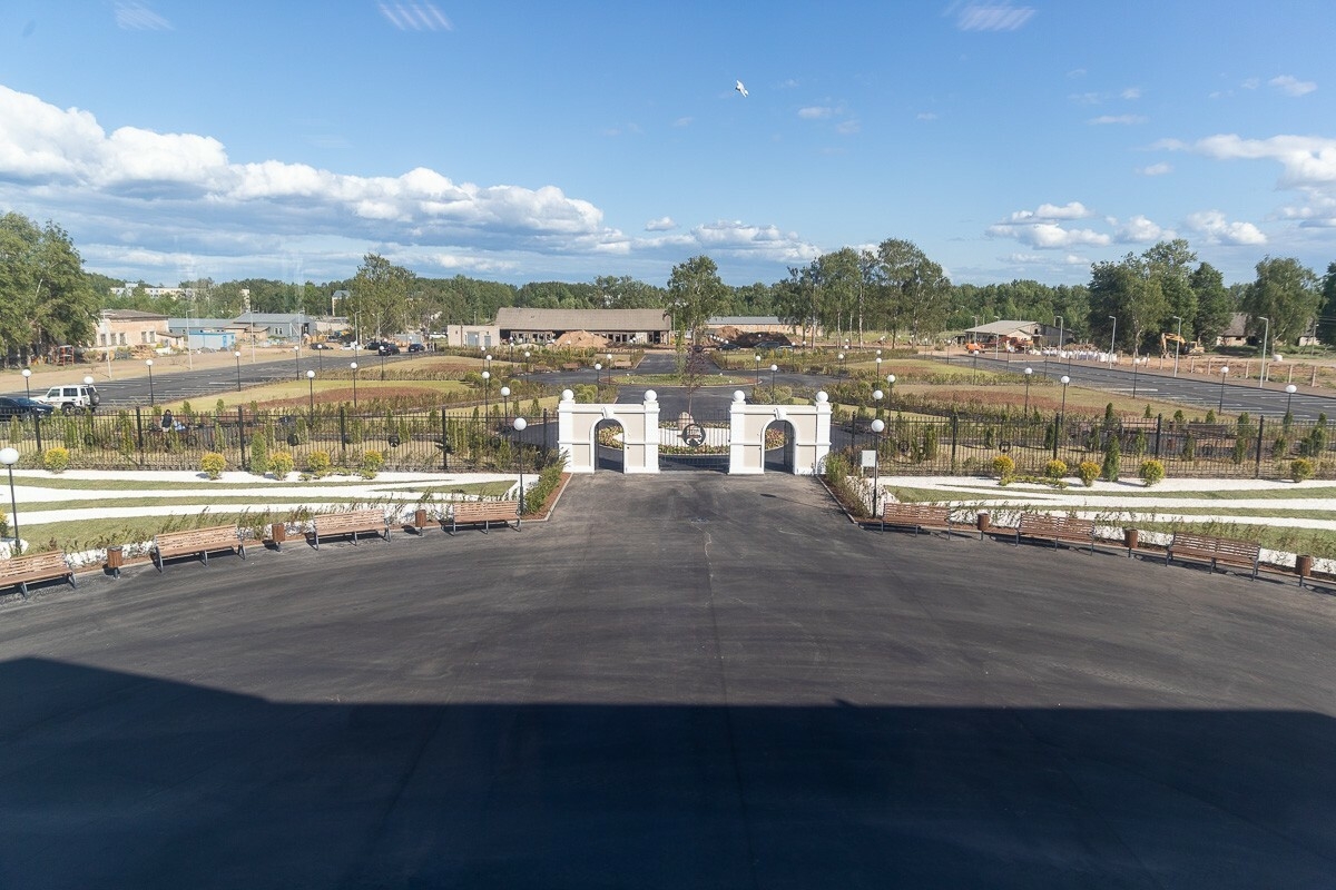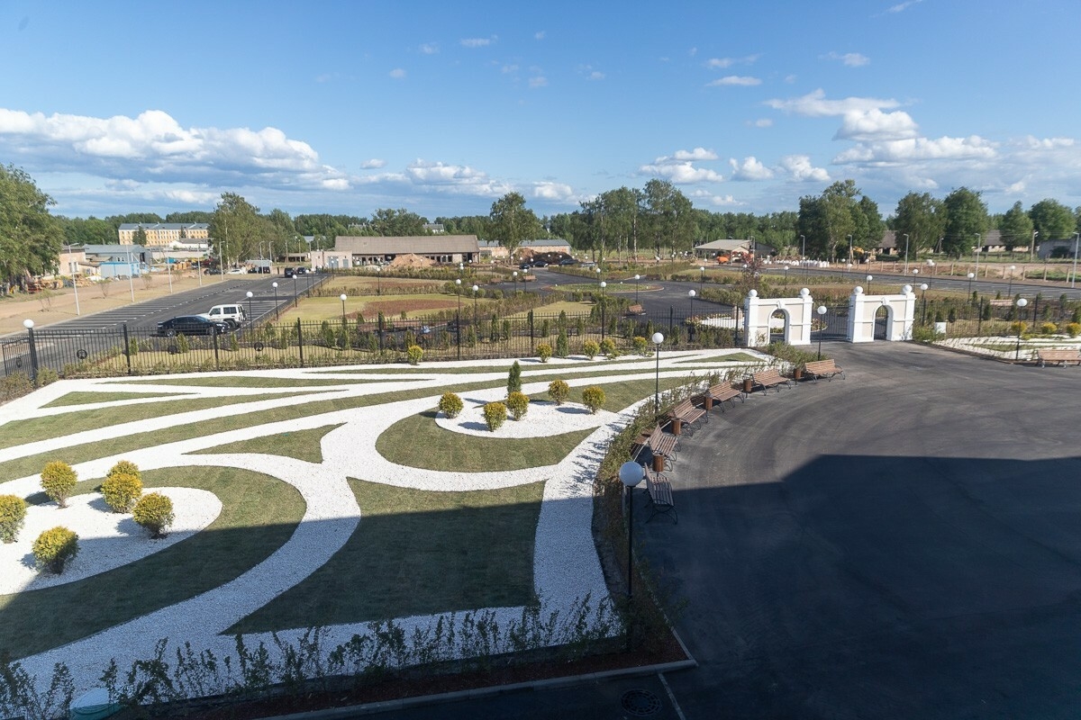 Вокруг корпуса большая парковая зона, где высажено почти 30 тыс растений.