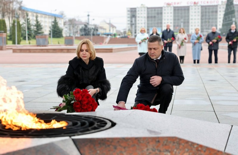 Губернатор Псковской области Михаил Ведерников и заместитель Премьер-министра Республики Беларусь Натальи Петкевич возложили цветы к Вечному огню на мемориале в честь советских воинов-освободителей, партизан и подпольщиков Витебщины. Памятная церемония прошла в пятницу, 21 ноября, в рамках Дней Псковской области в городе Витебске.
