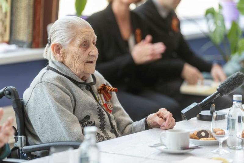 Во время тёплого, душевного разговора пожилые люди делились своими жизненными историями. Александра Яковлевна Смирнова, труженик тыла, прочла гостям стихи, посвящённые военным годам и светлому празднику Победы.