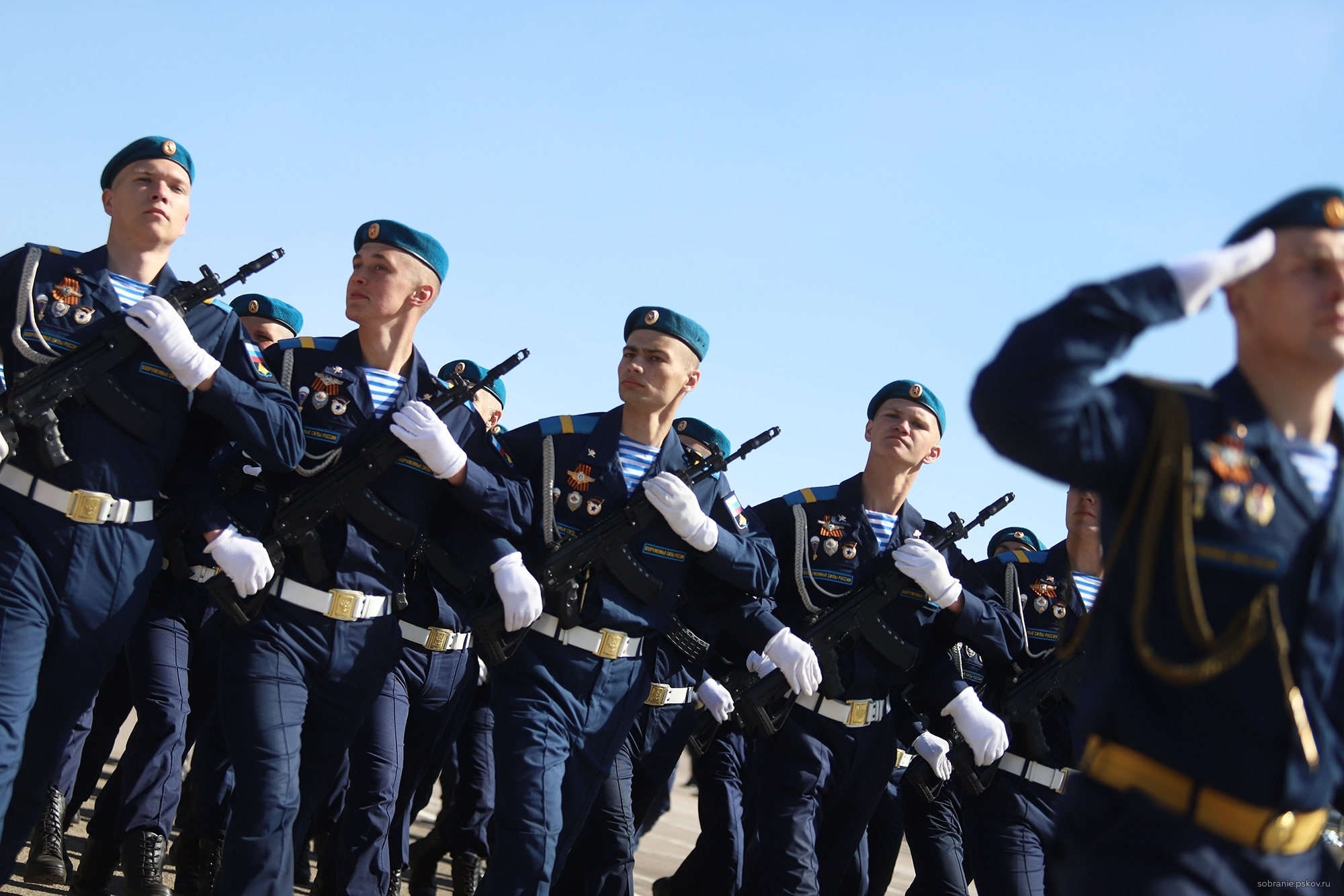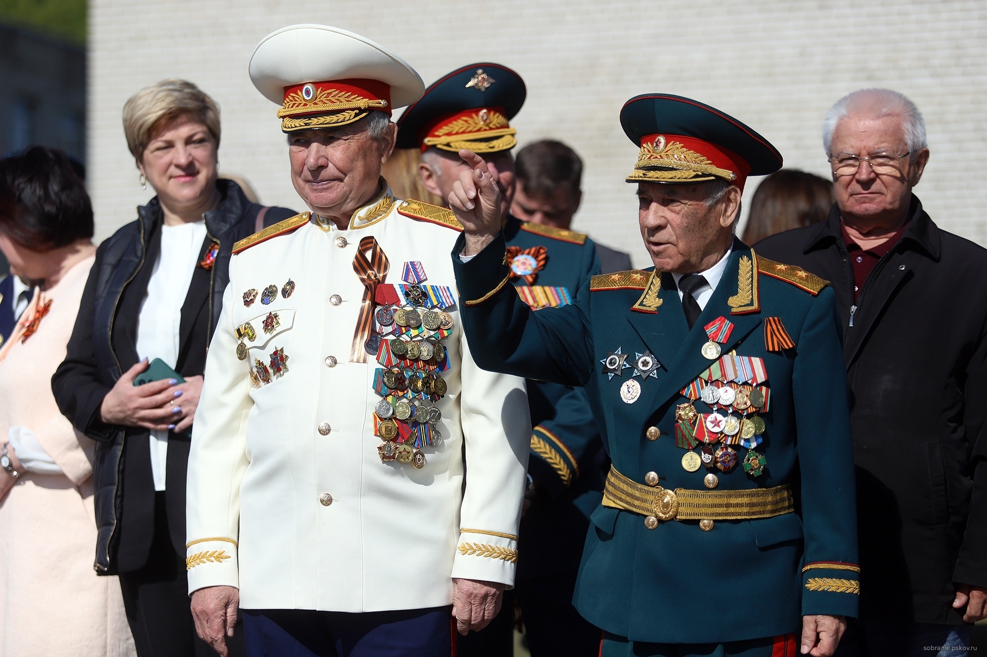 Митинг ко Дню Победы с построением войск Псковского гарнизона прошёл на плацу 76-й десантно-штурмовой дивизии. В торжественном мероприятии приняли участие губернатор Михаил Ведерников, председатель Псковского областного Собрания депутатов Александр Котов, глава Пскова Борис Ёлкин, ветераны Вооружённых сил, представители духовенства.