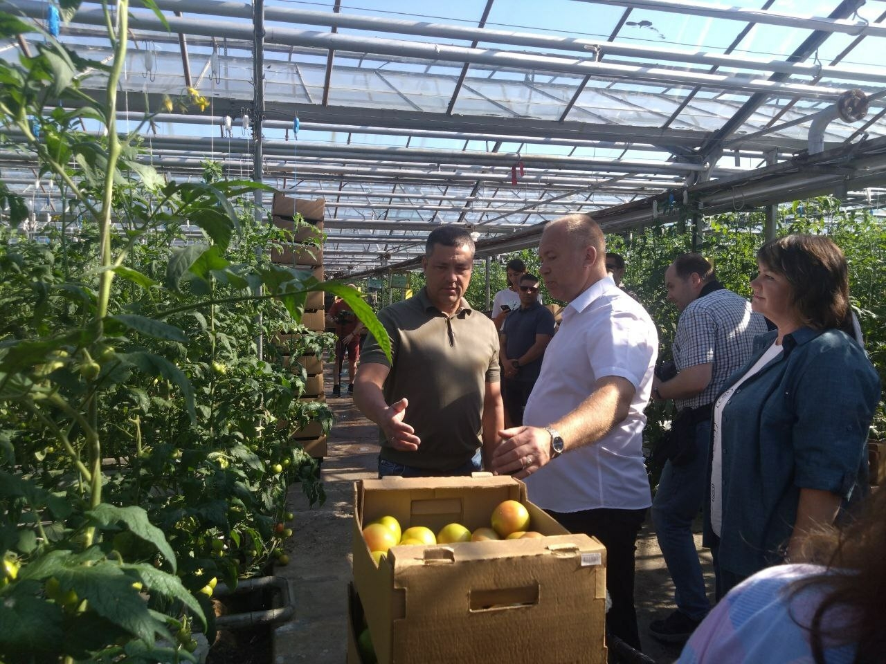 Агрофирма «Победа» — одно из крупнейших сельхозпредприятий региона с почти вековой историей. Здесь трудится около 200 человек, хозяйство выращивает овощи и разводит крупный рогатый скот. Губернатор осмотрел тепличный комплекс, где с апреля по ноябрь собирают урожай огурцов и томатов. В прошлом году здесь вырастили 1,7 тыс. тонн овощей и 3,5 тыс. тонн картофеля.