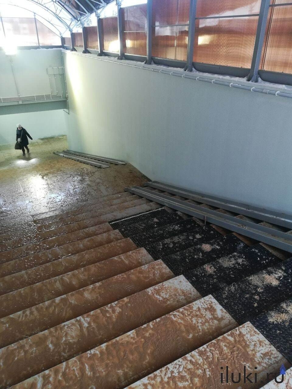 Напомним, что после открытия переходов великолучане неоднократно жаловались на скользкий пол. При этом есть у объекта и другие проблемы.