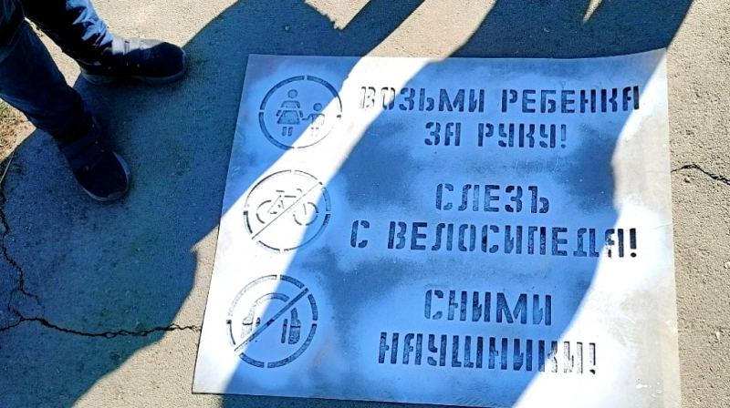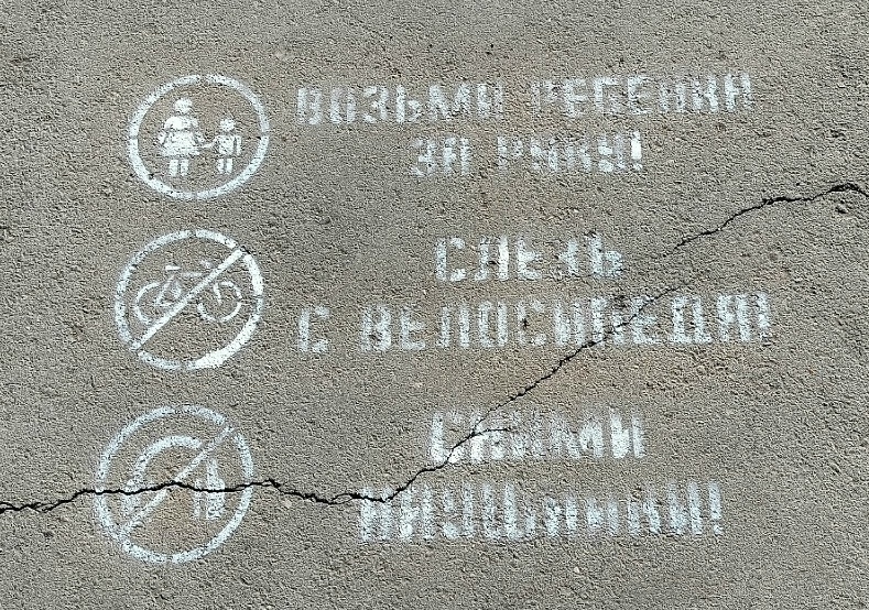 В Порхове возле пешеходных переходов, где обычно проходит много родителей с детьми и где регулярно можно встретить велосипедистов, - появились такие подсказки: «Возьми ребенка за руку», «Слезь с велосипеда», «Сними наушники» и другие.