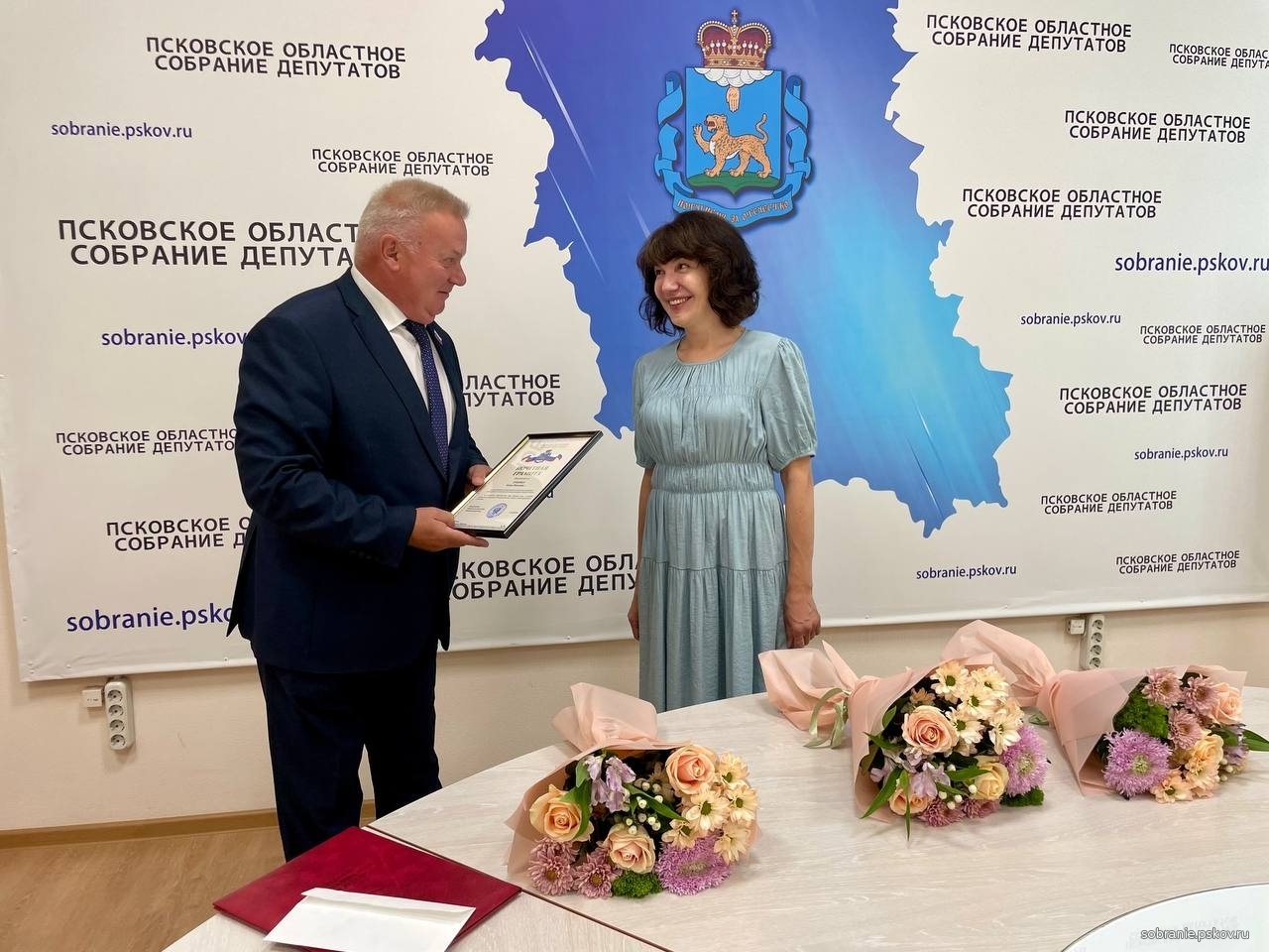 Главный врач ГБУЗ «Кожно-венерический диспансер Псковской области» Наталья Майорова удостоена Благодарности Псковского областного Собрания депутатов, врач-дерматовенеролог Елена Луценко награждена Почётной грамотой Псковского областного Собрания депутатов. Главному врачу ГБУЗ «Псковский областной клинический онкологический диспансер» Александру Юрову также вручена Благодарность Собрания.