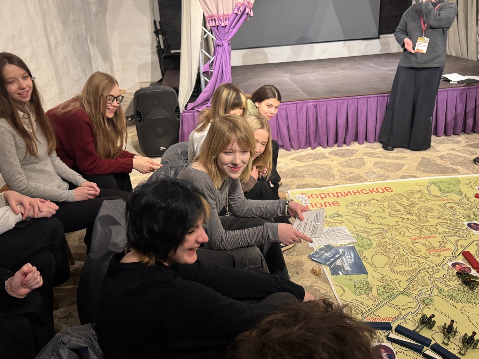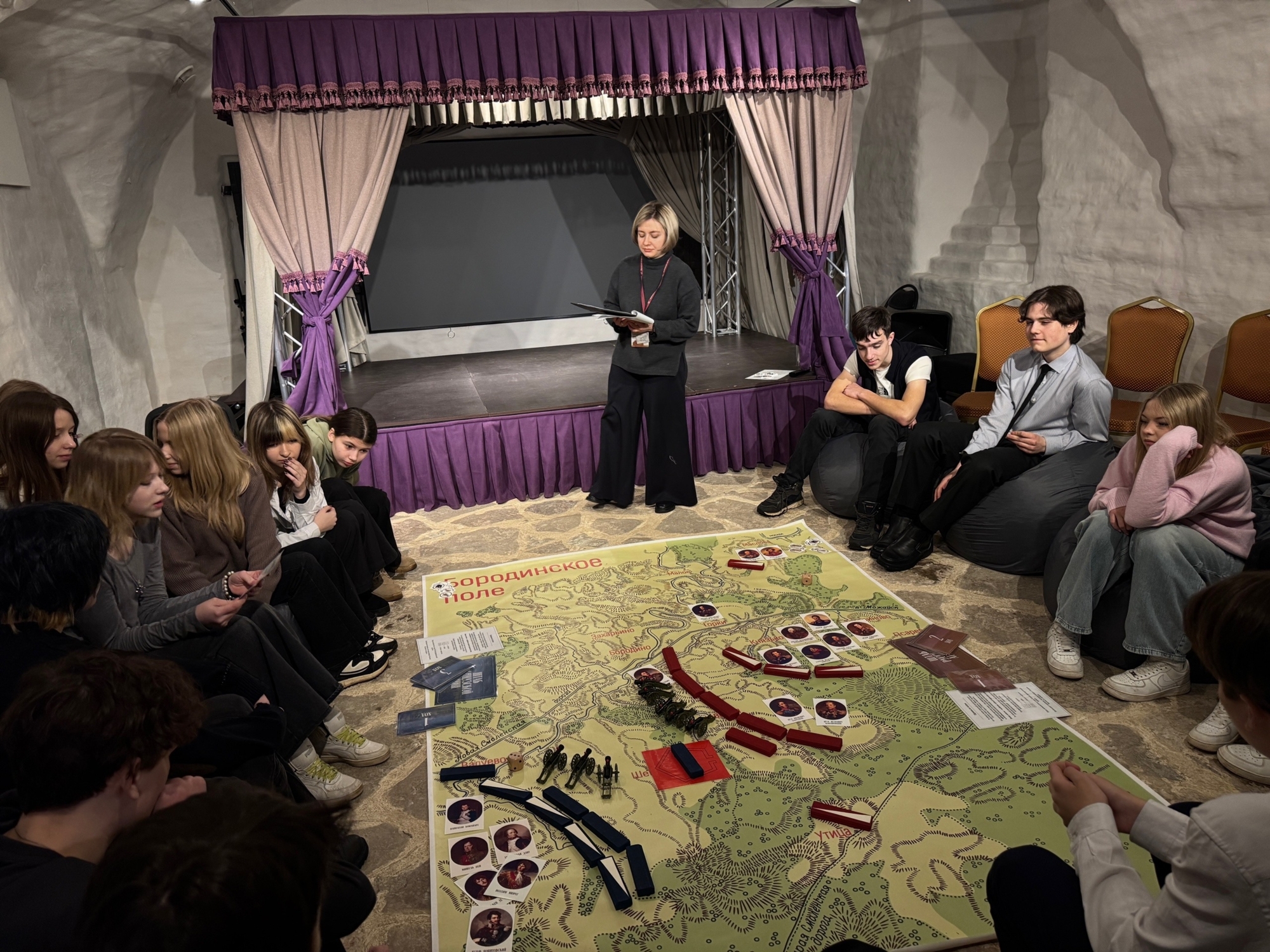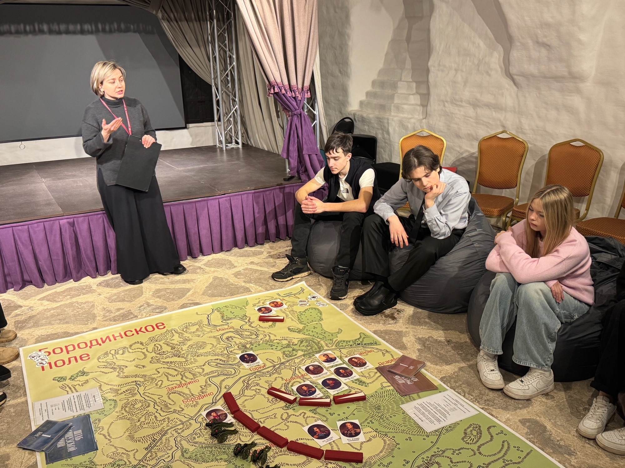 После школьники смогли проверить полученные знания на практике во время познавательной игры «Гроза 12-го года», в рамках которой они воссоздали на карте ход крупнейшего сражения Отечественной войны – Бородинской битвы.