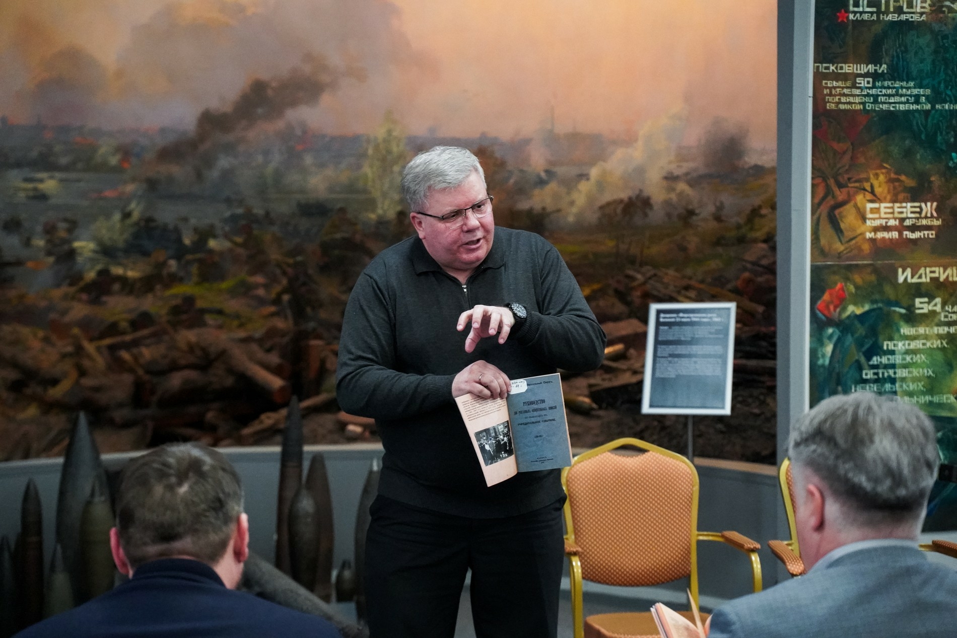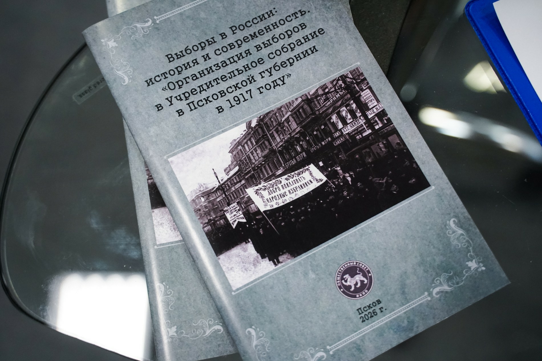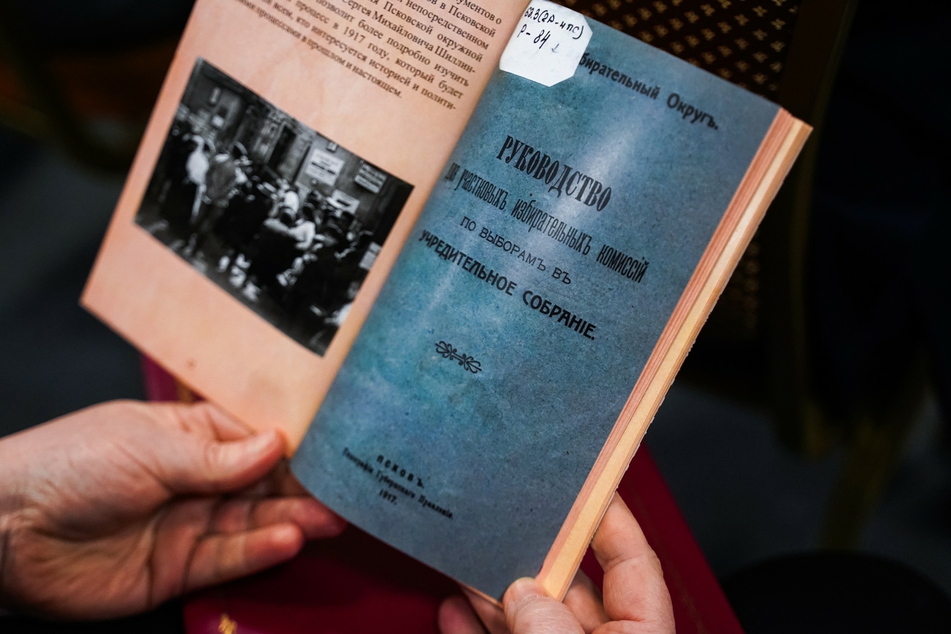 В экспозиции Псковского музея-заповедника «Псковский край в годы Великой Отечественной войны» представили книгу «Выборы в России: история и современность. Организация выборов в Учредительное собрание в Псковской губернии в 1917 году». Издание подготовлено Общественным советом Псковской области совместно с Избирательной комиссией области при поддержке Государственного архива Псковской области.
