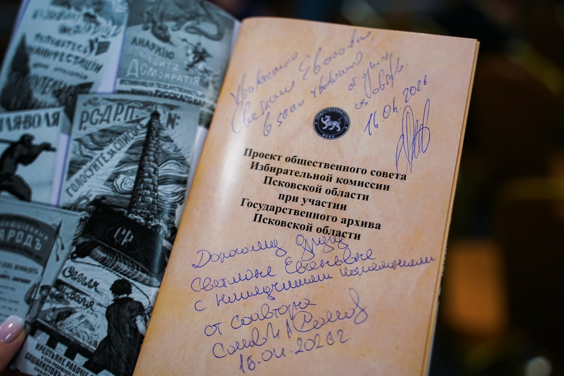 – Выражаю благодарность всем, кто принимал участие в создании книги. Поражают масштаб темы и острота выбранного периода. Выборы в Учредительное собрание 1917 года знаменательны тем, что во времена перелома стали свидетельством непоколебимости демократических традиций страны. Проводя исторические параллели с этим событием, сегодня мы продолжаем развивать современную выборную систему, – отметила Светлана Мельникова, генеральный директор Псковского музея-заповедника.
