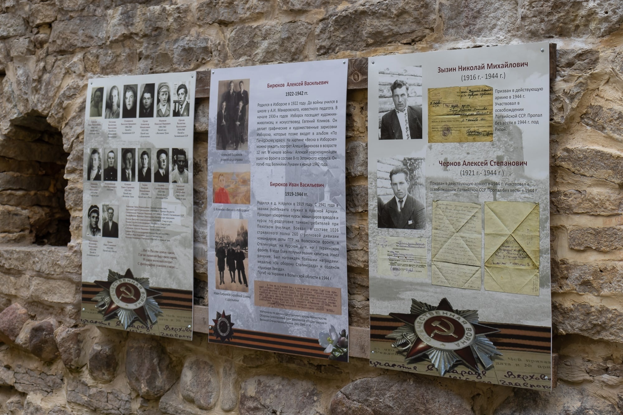 В память об изборянах – участниках Великой Отечественной войны, труженниках тыла, всех, кто подарил нам радость Великой Победы, в Никольском захабе Изборский крепости работает выставка «Победители».