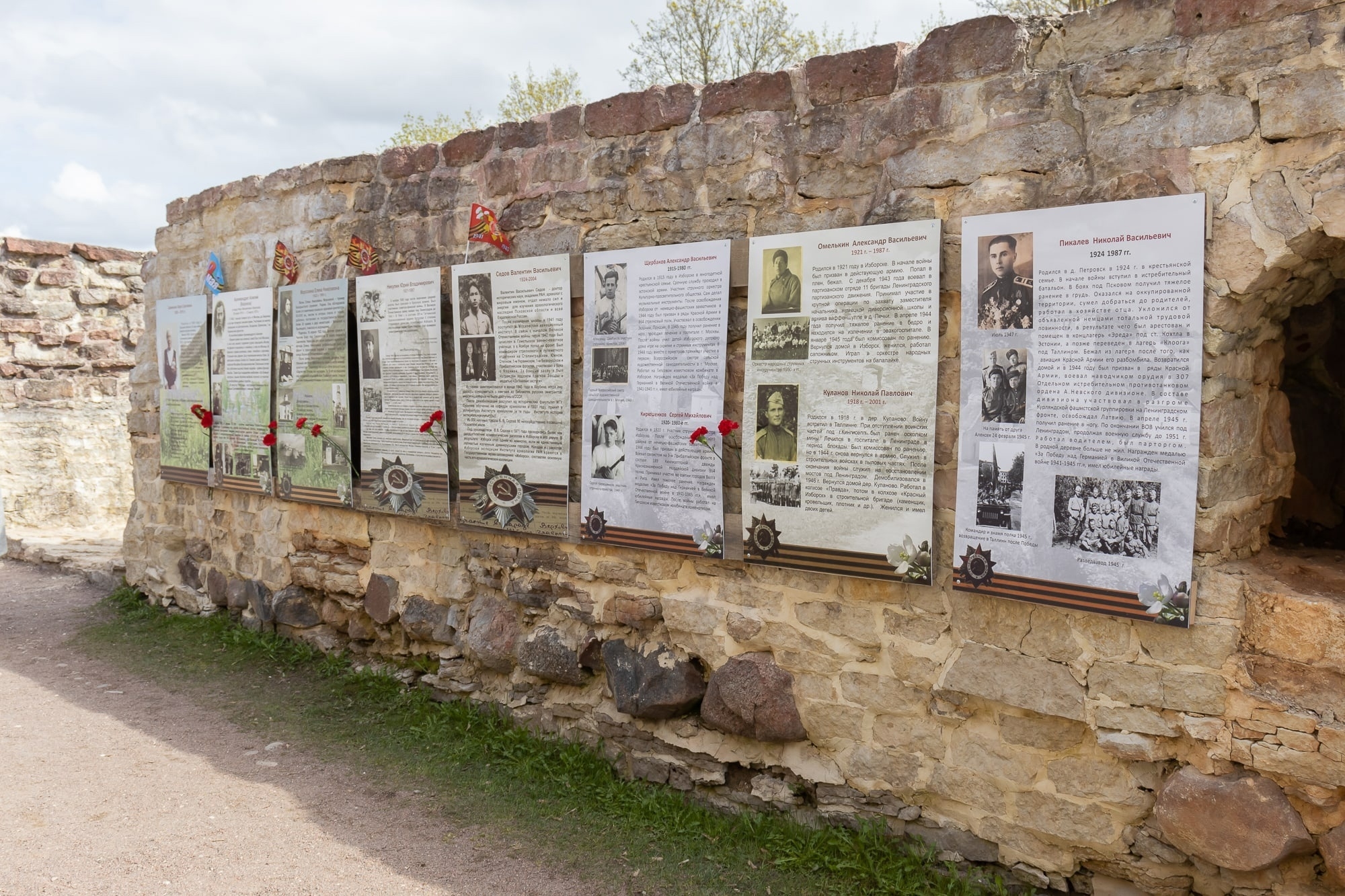 Обновленную выставку «Победители» открыли в Никольском захабе Изборской крепости. В этом году выставка дополнилась информацией ещё о пяти героях.