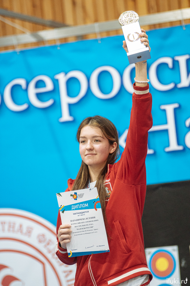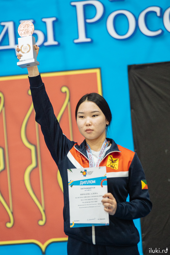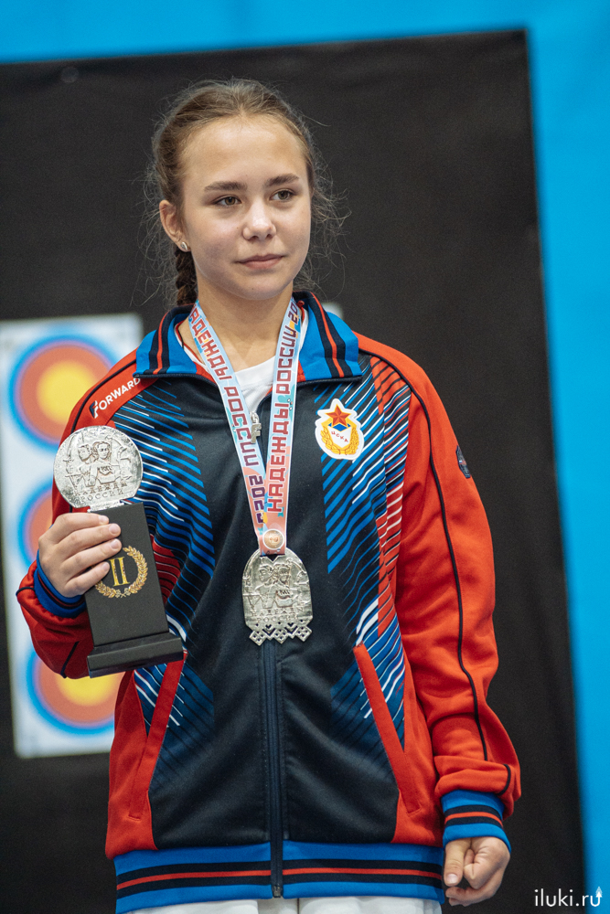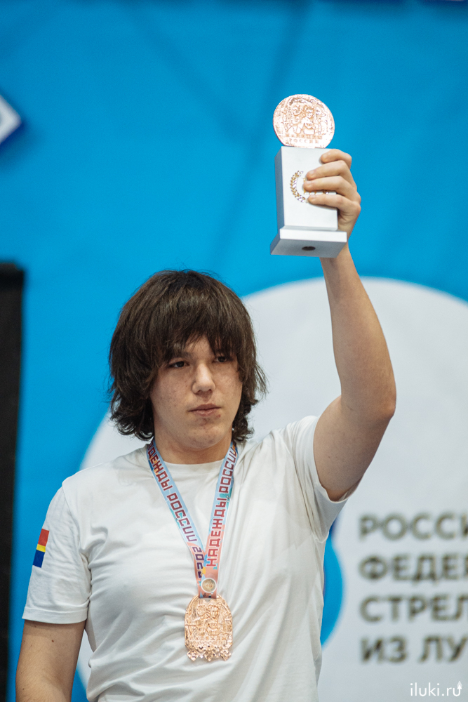 Бронзовые медали были разыграны накануне. На третью ступень пьедестала поднялась Елена Захаренкова. Она представляла Псковскую область среди юниорок в блочном луке.