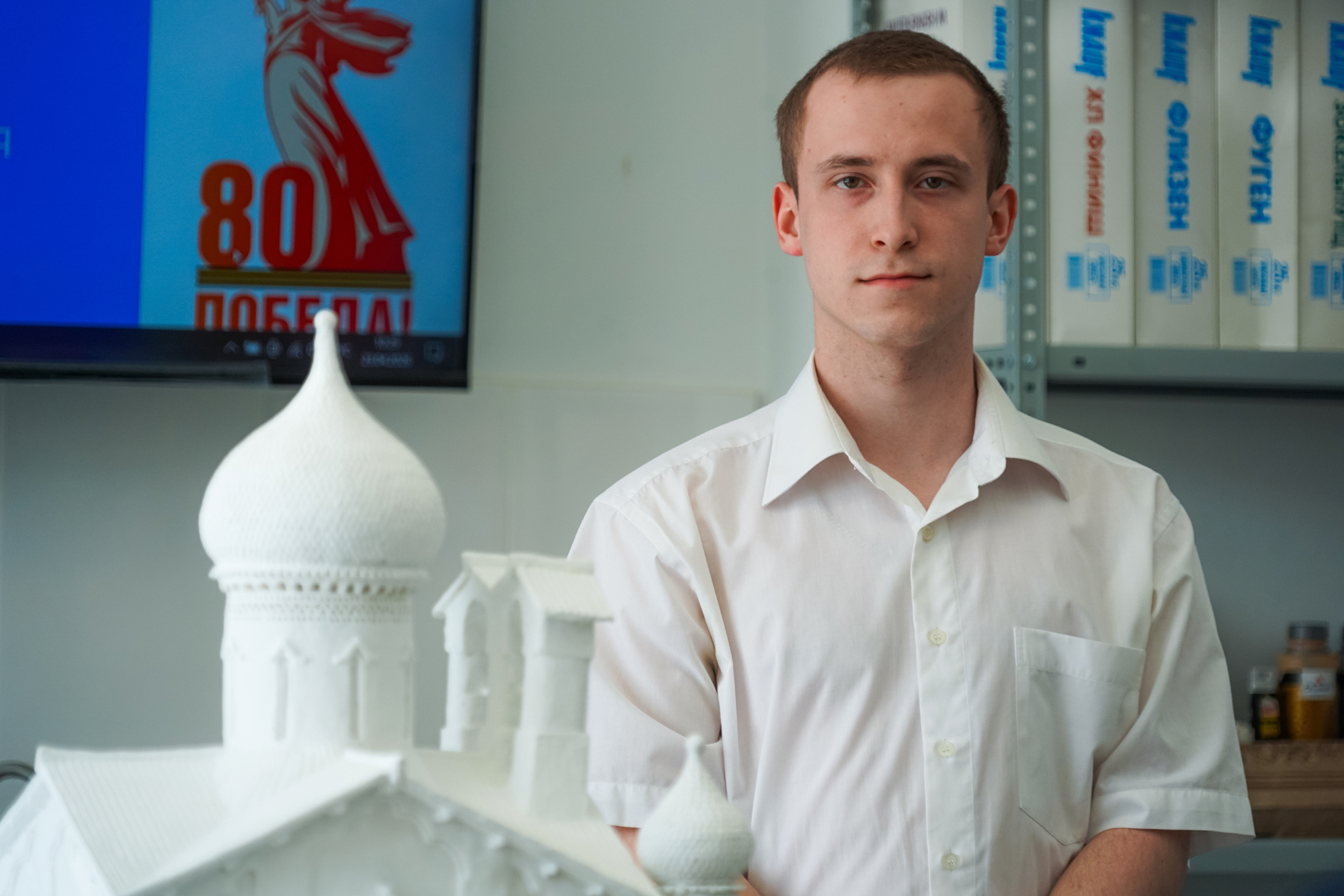 Ярослав Ильин, студент 3 курса направления «Реставратор строительный» Псковского политехнического колледжа, отреставрировал макет церкви Николы со Усохи 1972 года. Теперь этот макет передан в Псковский музей-заповедник и станет частью Музейного фонда России. Благодарности Ярославу Ильину, его преподавателям и руководству колледжа вручила генеральный директор Псковского музея Светлана Мельникова.