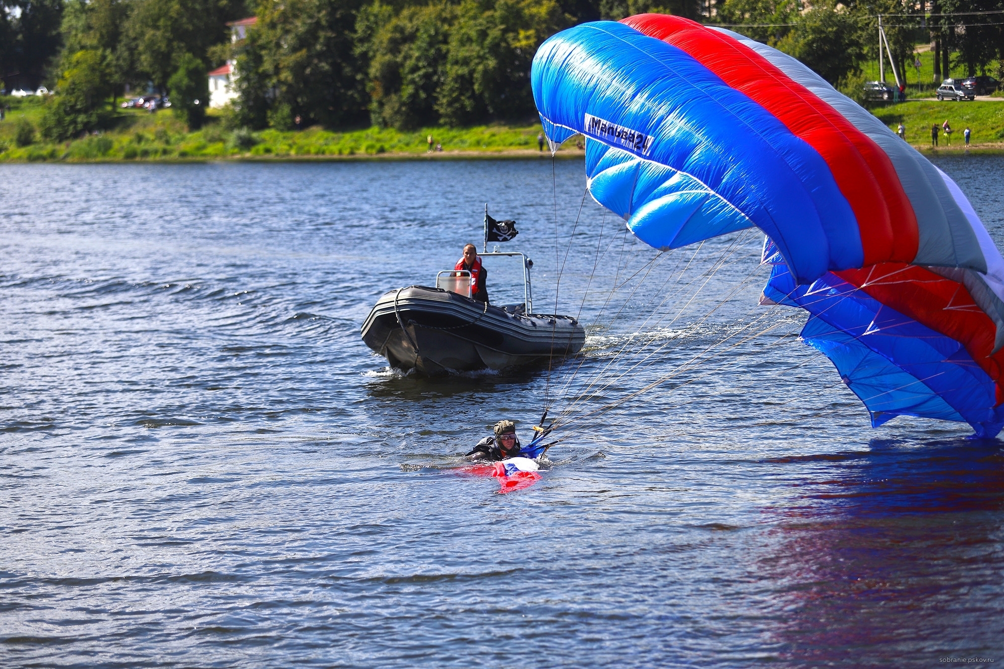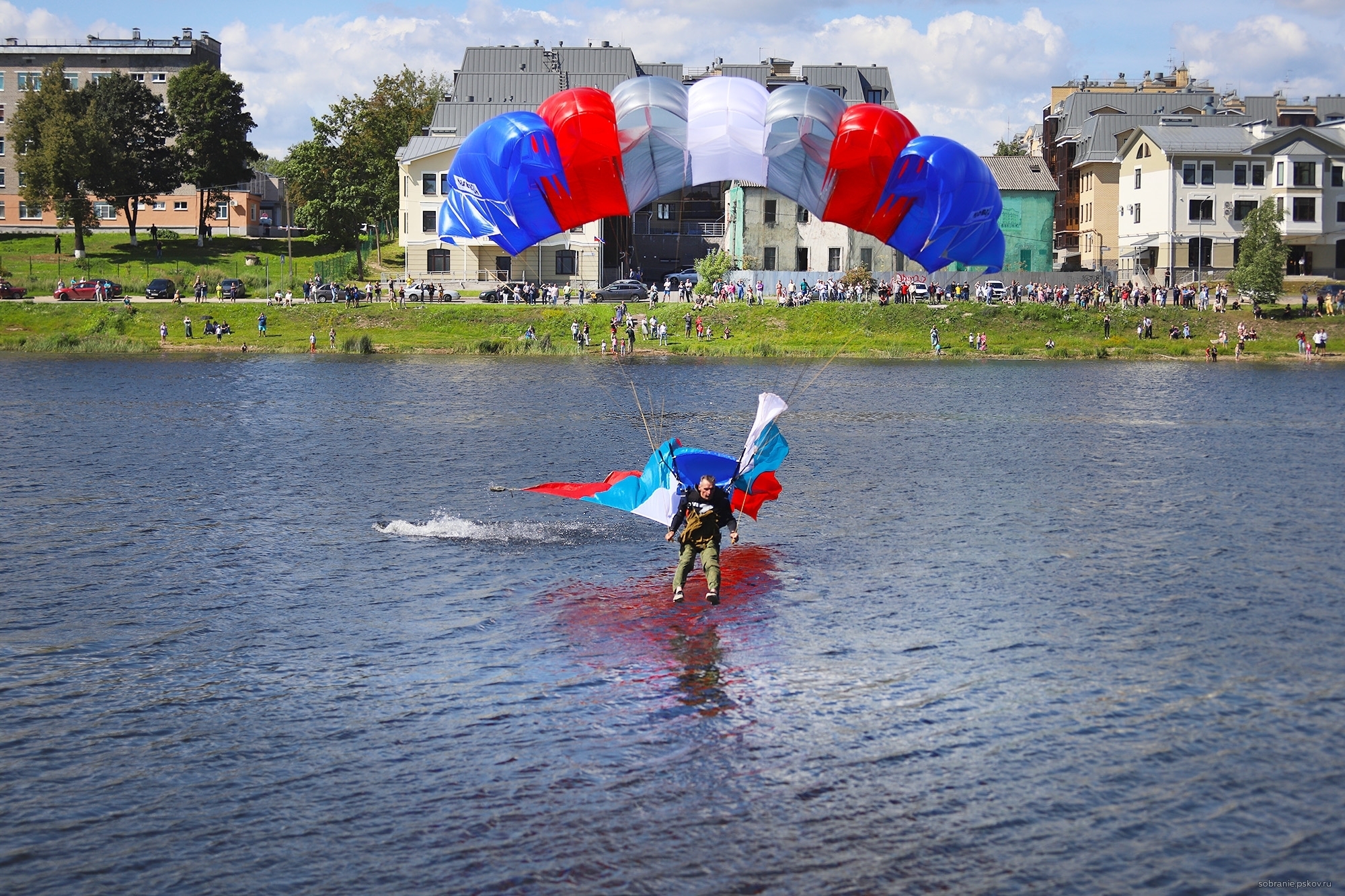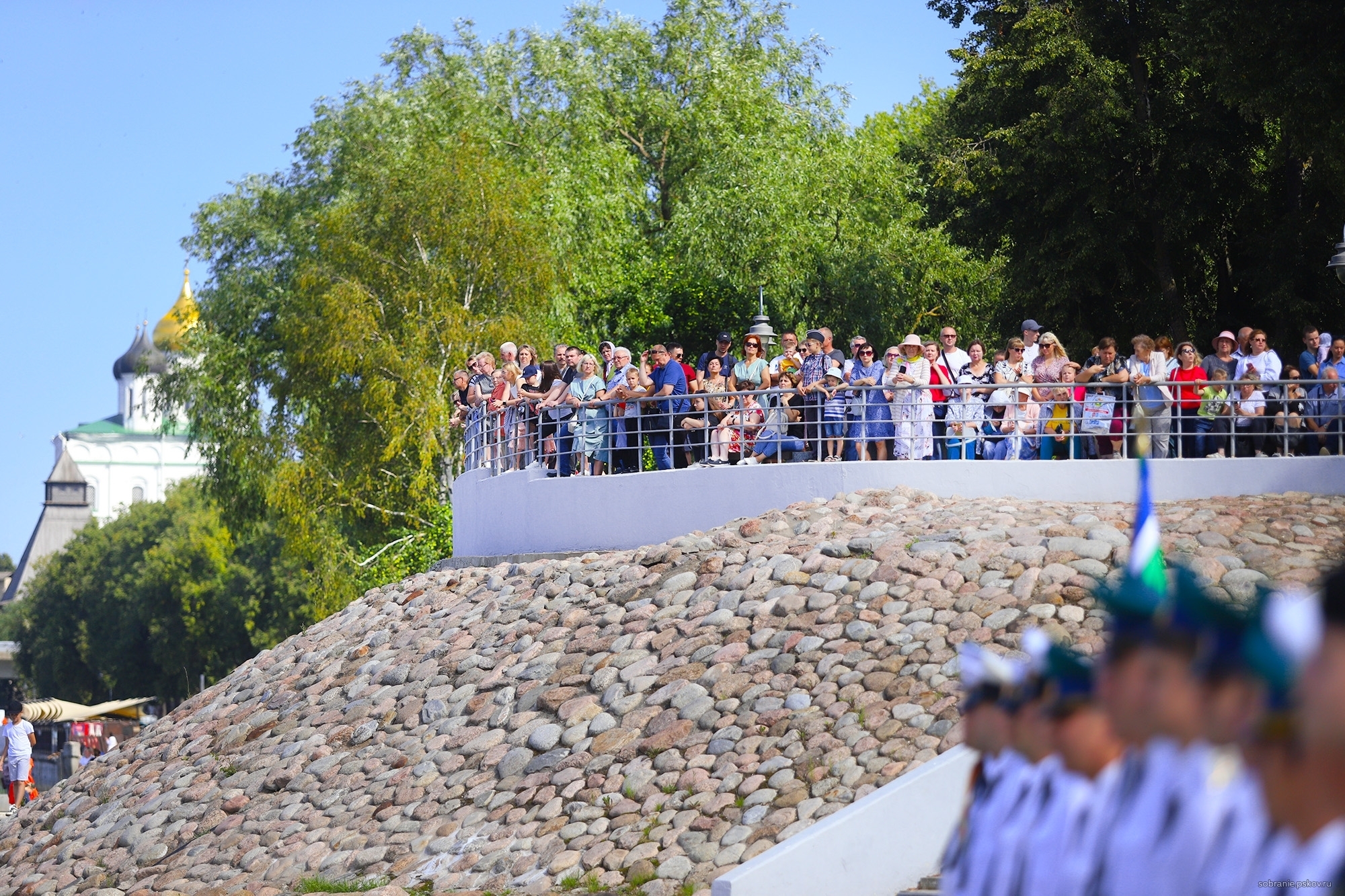 Официальная часть празднования завершилась возложением цветов к мемориальному комплексу «Псковичам-флотоводцам» и прохождением торжественным маршем парадных расчётов. Затем состоялись показательные вступления псковских парапланеристов по десантированию на воду, парад военных катеров, пролёт лёгких воздушных судов и концерт творческих коллектив.