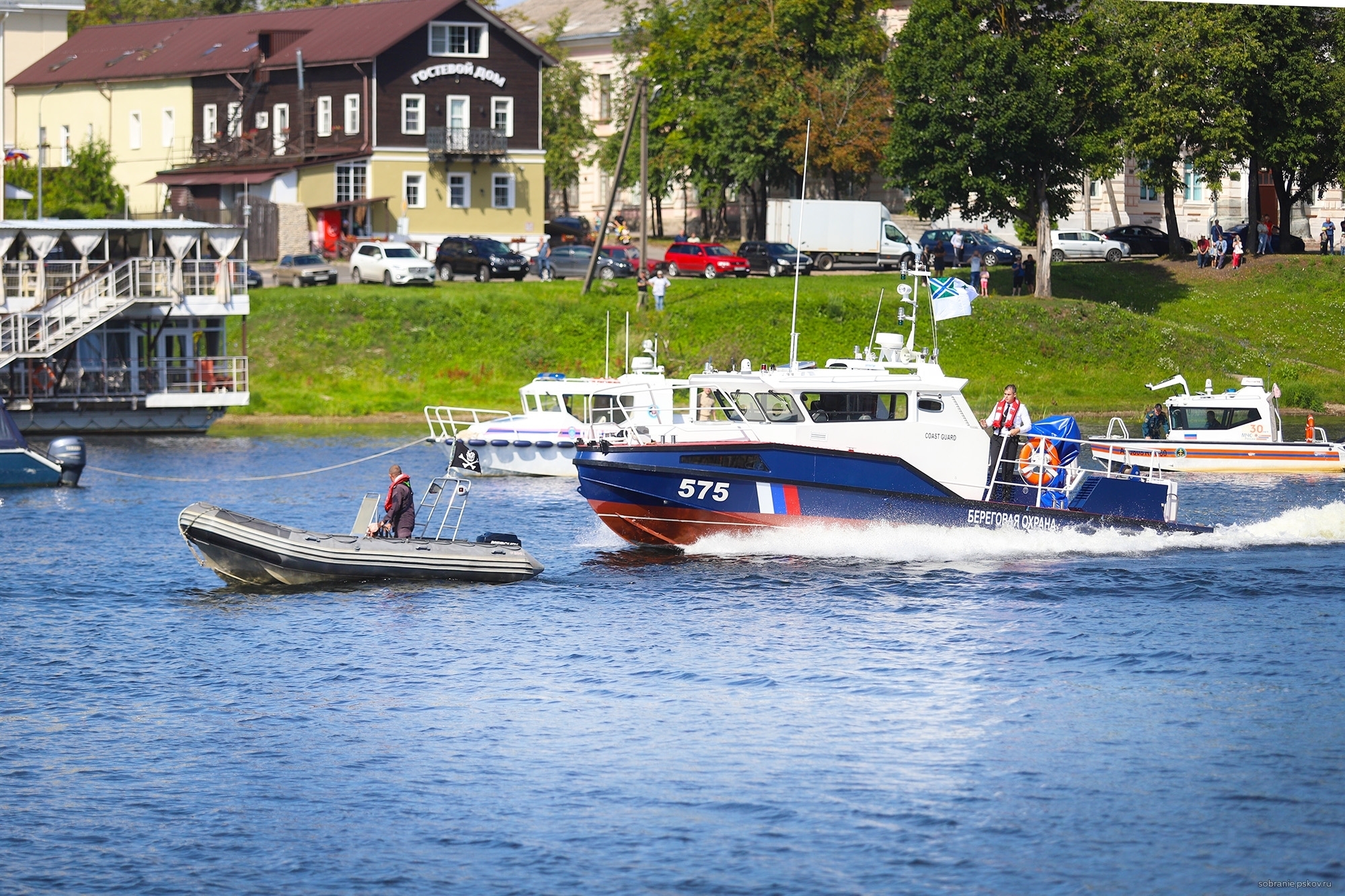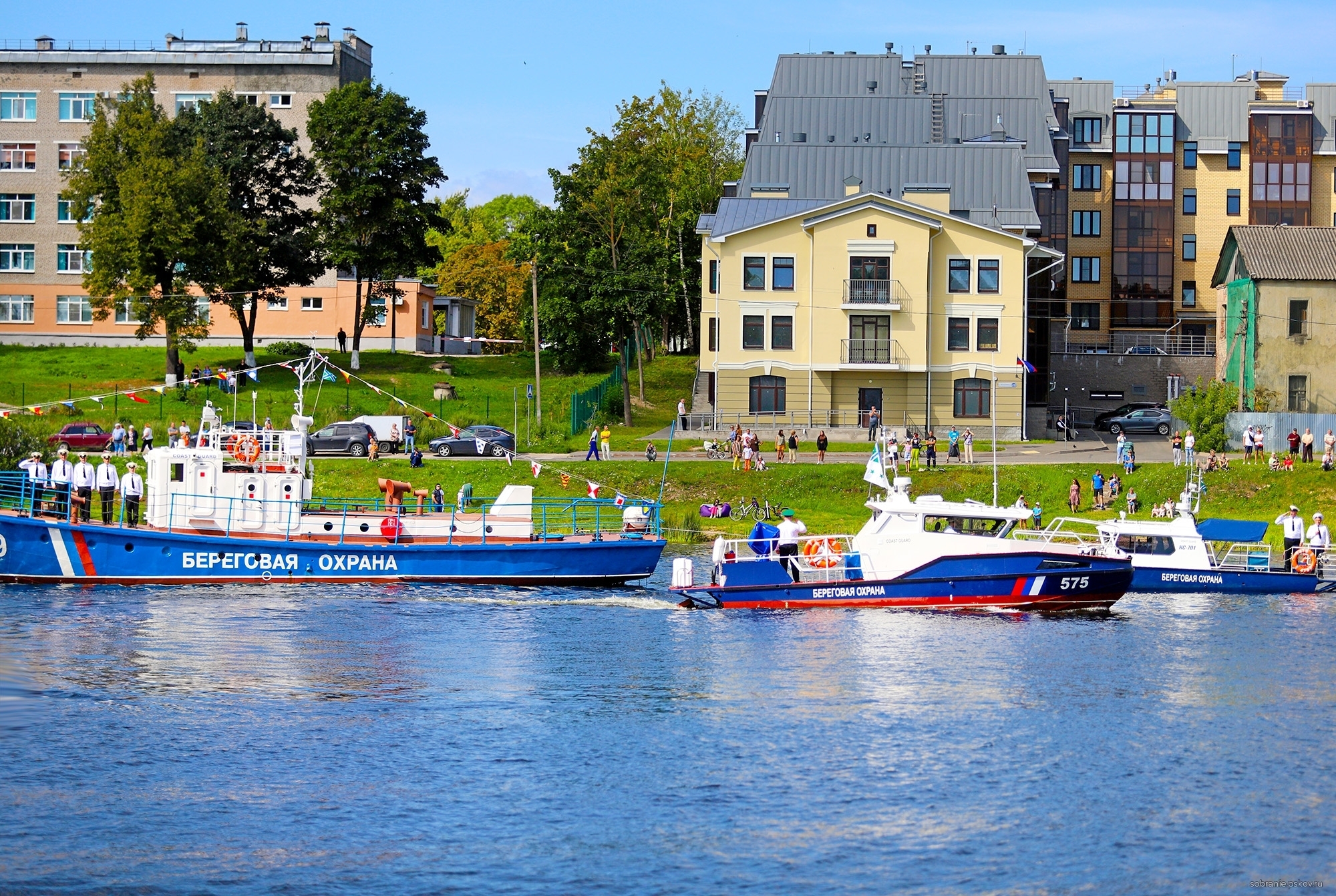 Украшенные флагами военные суда дивизиона пограничных сторожевых катеров выстроились в акватории реки. Военных моряков с борта новейшего российского катера проекта КС-850 приветствовал старший морской начальник, врио начальника Пограничного управления ФСБ России по Псковской области полковник Сергей Власов.