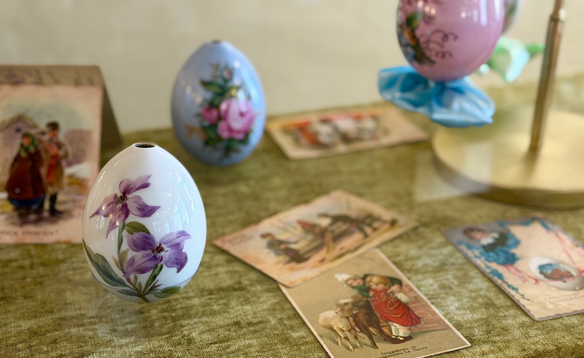 На выставке представлены фарфоровые пасхальные яйца ХІХ – начала ХХ веков. Коллекция, которая начала формироваться в 2022 году, за последний год значительно пополнилась достойными внимания образцами. Созданные на Императорском фарфоровом заводе в Санкт-Петербурге и частных заводах Российской империи, разные по сложности и манере исполнения, они отражают высочайший уровень технического мастерства и развития русской художественной традиции.