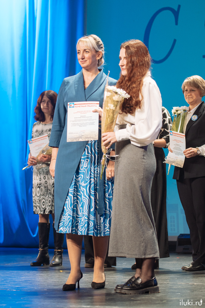 После официальной части стартовала развлекательная программа. По традиции свои лучшие номера представили творческие коллективы города Ловати. Поздравить педагогов приехали артисты разных возрастов.