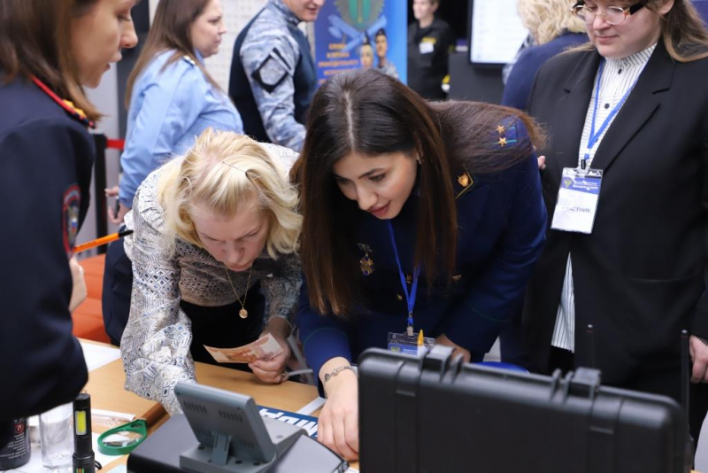 В рамках форума сотрудники полиции подготовили интерактивную площадку, на которой продемонстрировали различные экспертно-криминалистические экспертизы: дактилоскопирование, исследование денежных билетов на подлинность. Каждый желающий мог попробовать свои силы в обнаружении и изъятии следов пальцев рук с различных поверхностей и следов обуви с места происшествия.