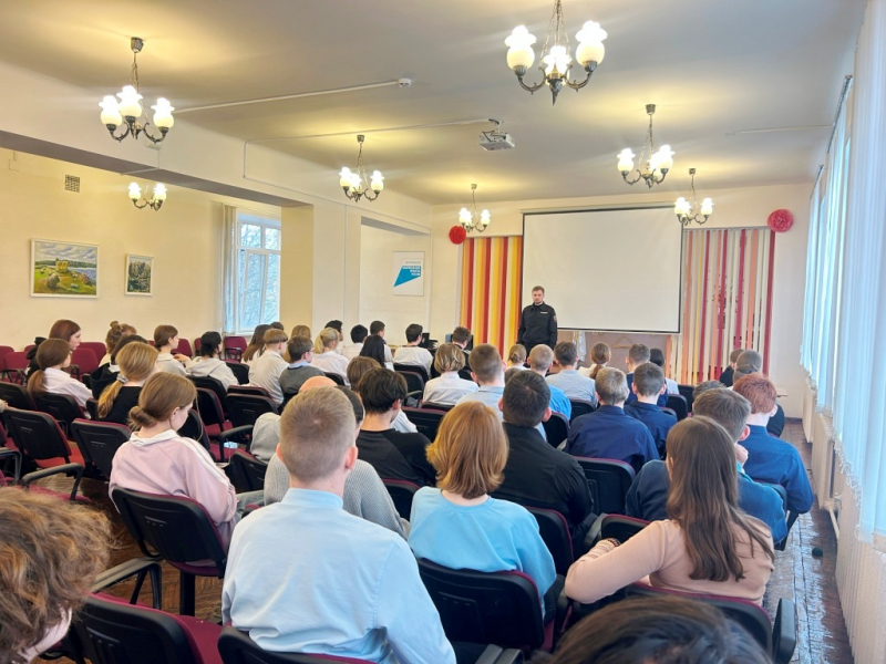 Оперуполномоченный отдела по контролю за оборотом наркотиков ОМВД России по городу Великие Луки старший лейтенант полиции Никита Хубулов провел профилактическую беседу с учащимися 7–11 классов Великолукской школы-интерната.