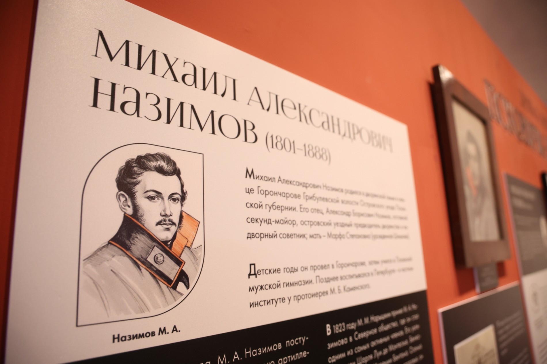 Центральным экспонатом выставки станет акварельный портрет М.А. Назимова кисти Надежды Ильиничны Назимовой – племянницы декабриста, дочери инженер-полковника Ильи Александровича Назимова. Экспонат был передан в музей в 1974 г. внучатыми племянницами Михаила Александровича – Н.А. и К.А. Баулер. Кроме того, на выставке вы сможете увидеть другие вещи из фонда Назимовых: фотографии, оригинальная рама с портретом жены М. А. Назимова Варвары Яковлевны Подкользиной, письмо Марии Ильиничне Назимовой (Баулер) с подписью Михаила Александровича.