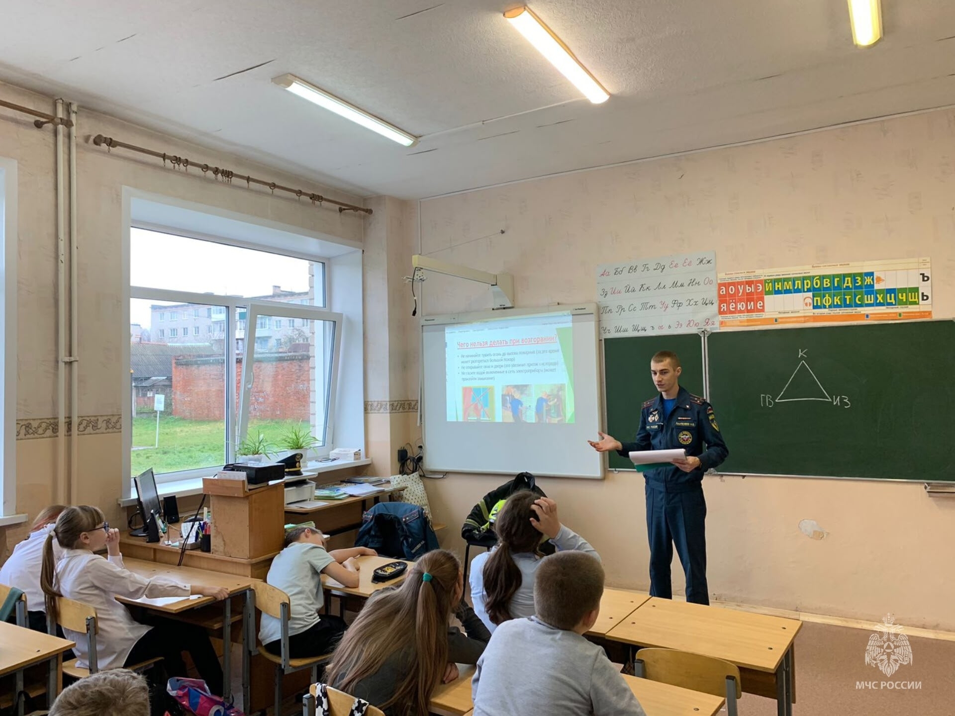 Заместитель начальника пожарно-спасательной части №6 города Великие Луки Никита Пантелеев посетил МБОУ «СОШ №5» с познавательным рассказом о правилах пожарной безопасности.