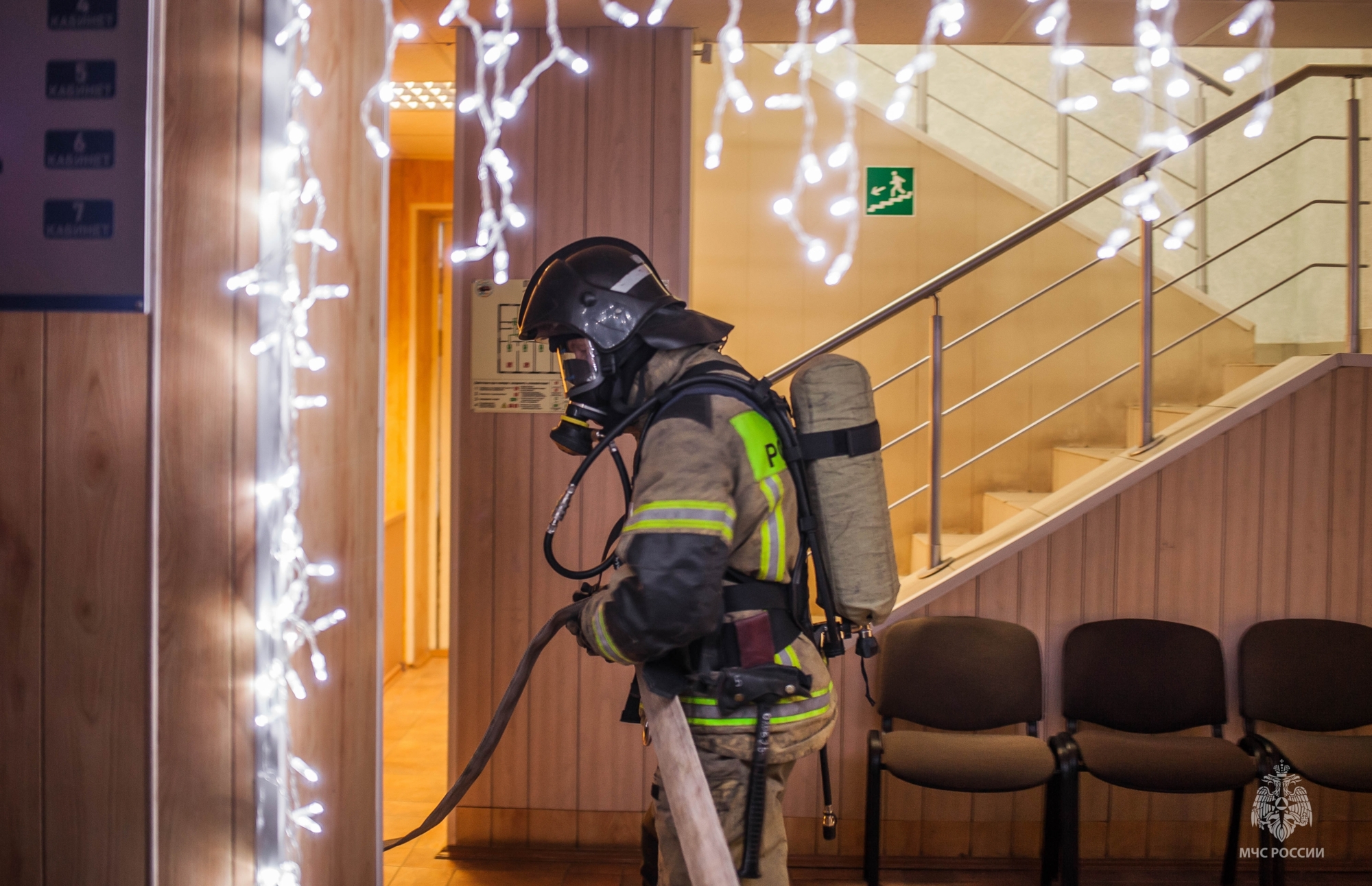 По легенде, в результате короткого замыкания в бытовом электроприборе произошло возгорание в одном из помещений, расположенном на втором этаже административного корпуса. Создалась угроза жизни персоналу санатория.