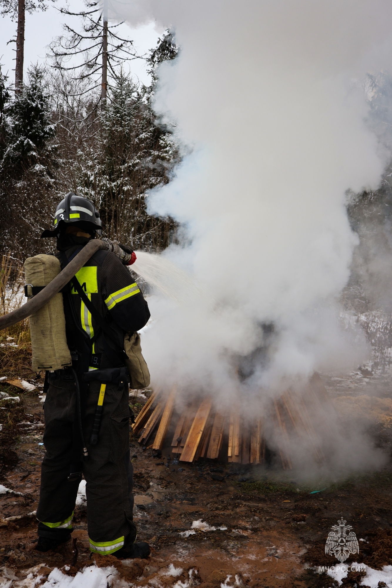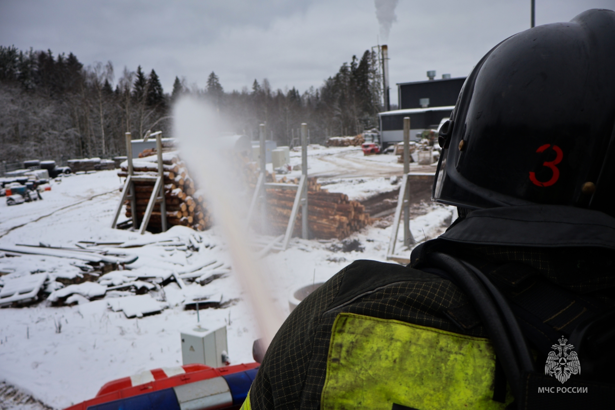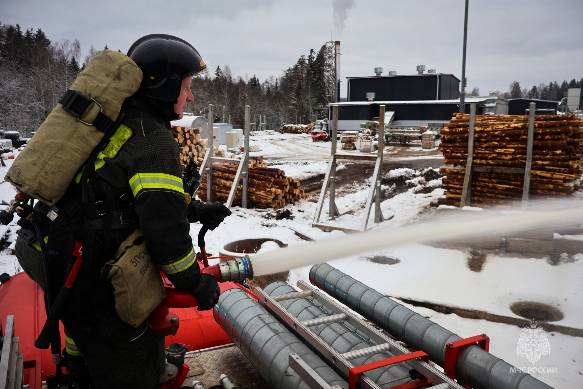 На территории псковского деревообрабатывающего предприятия прошли пожарно-тактические учения.