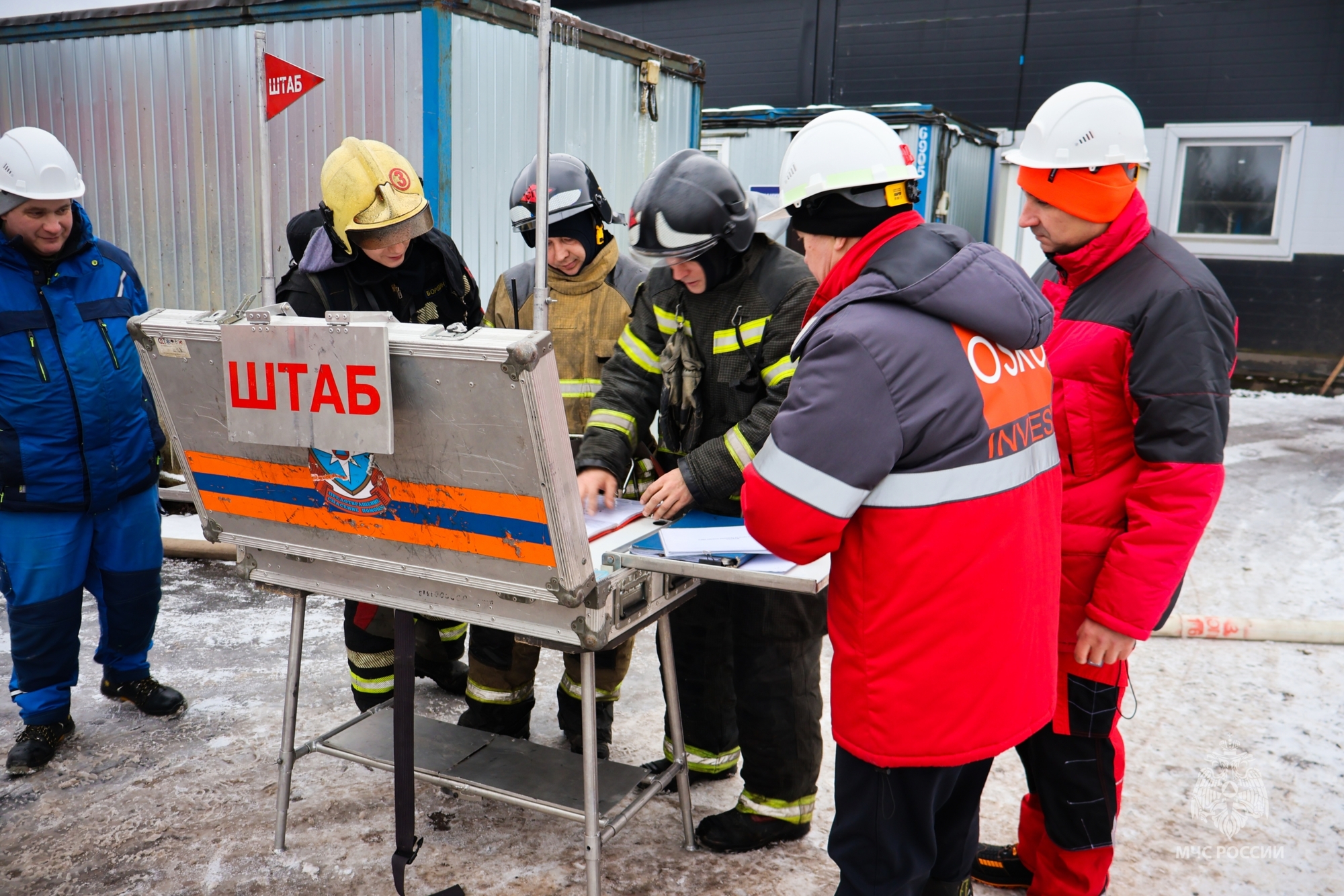 По замыслу учения в результате короткого замыкания произошло возгорание в производственном цехе на первом этаже деревообрабатывающего предприятия с последующим распространением горения на соседние здания. Создалась опасность для людей, находящихся в здании.