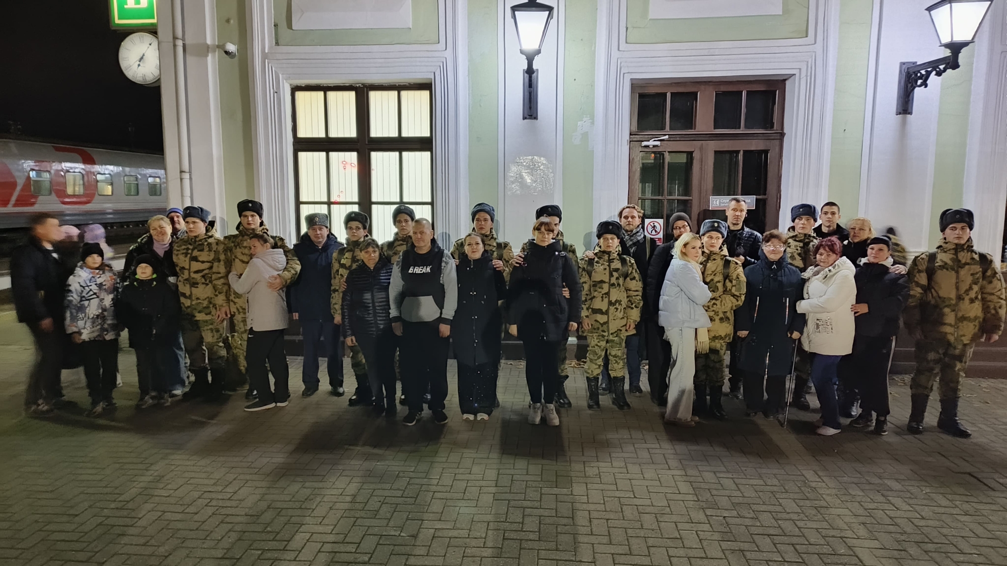 С железнодорожного вокзала Пскова отправилась группа призывников, которые будут проходить военную службу в подразделениях Северо-Западного округа Росгвардии.