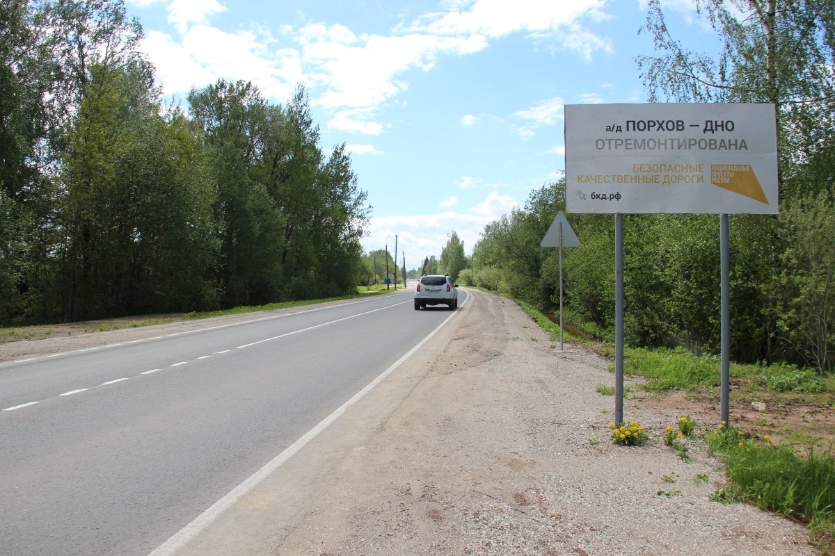 Введен в эксплуатацию переходящий объект национального проекта «Безопасные качественные дороги» 2020-2021 годов – дорога Порхов – Дно в Порховском районе Псковской области. Участок длиной 2 км проходит по улице Старорусской города Порхова. Дорога относится к III категории и имеет высокую значимость для жителей районного центра.