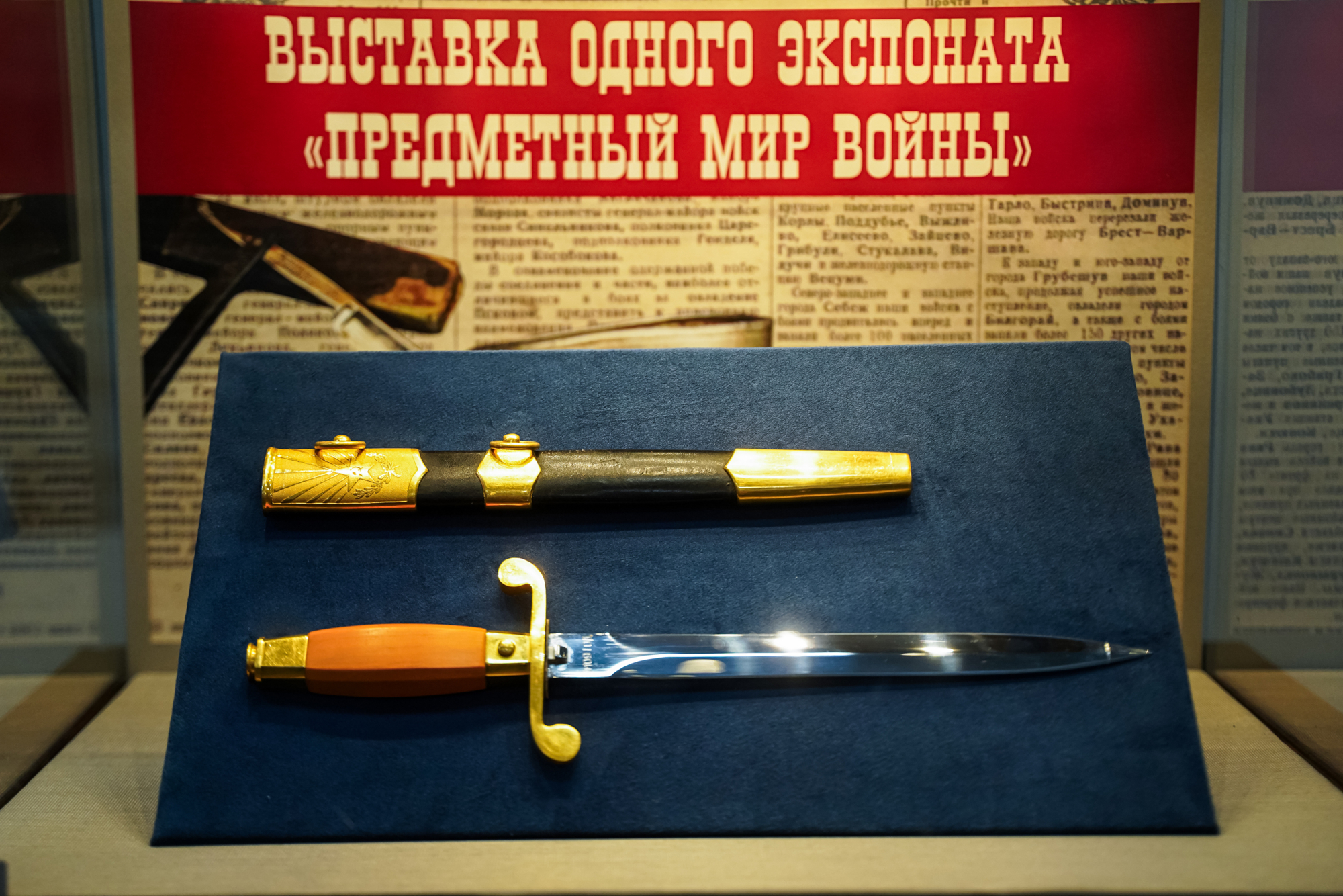 В Псковском музее-заповеднике в экспозиции «Псковский край в годы Великой Отечественной войны» представлены кортик офицерский и ножны генерал-лейтенанта Черепанова Александра Ивановича.