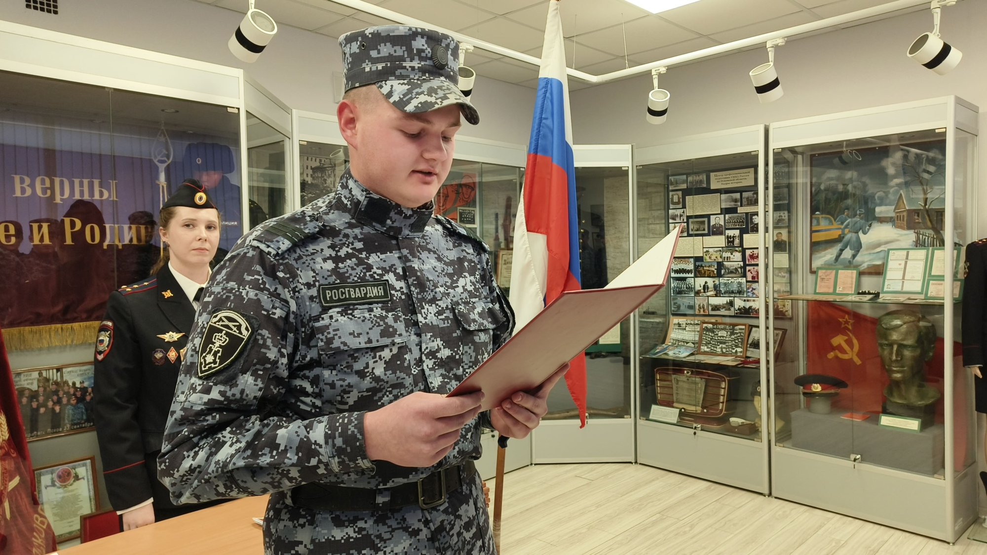 В Пскове состоялась торжественная церемония принятия Присяги сотрудниками, поступившими на службу в подразделения вневедомственной охраны и государственного контроля Управления Росгвардии по Псковской области.