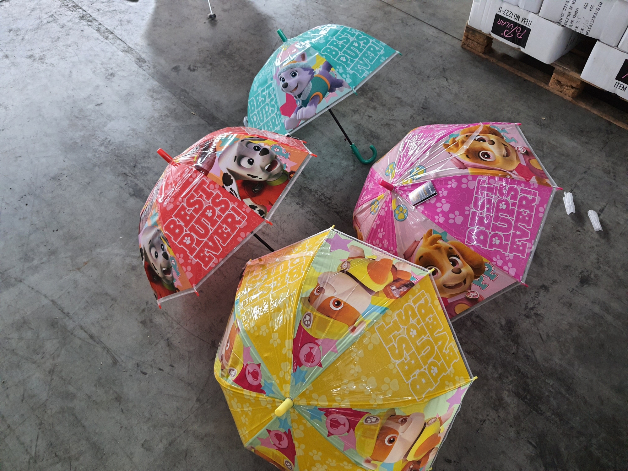 В этом же контейнере обнаружены 3 тысячи разноцветных детских зонтиков из полиэстера и рисунками животных с надписью Best Pups Ever, с использованием объектов авторского права компании Спин Мастер Лтд (Spin Master Ltd) - бренд «Щенячий патруль».