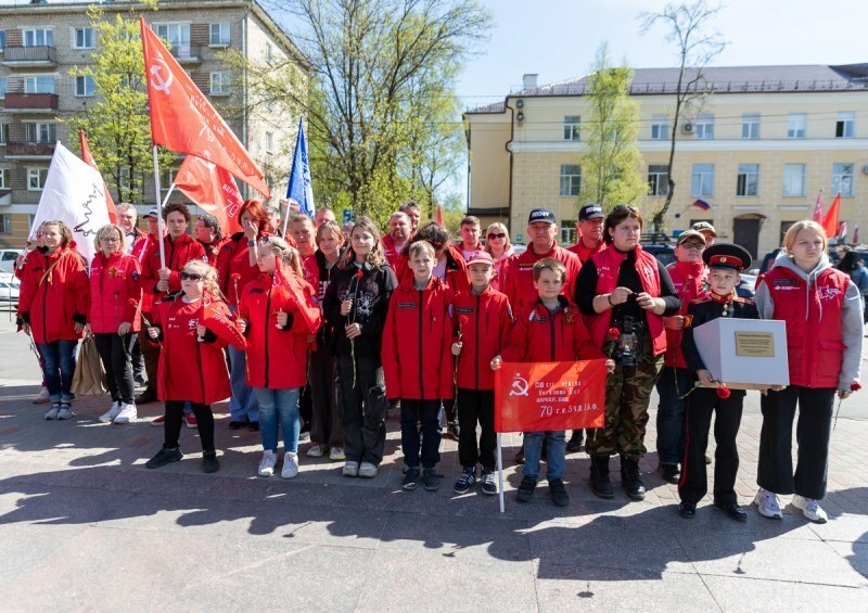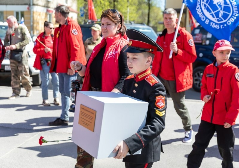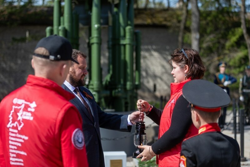 В Псковской области колонна патриотов прошла через Изборск и прибыла в Псков, где у памятника Неизвестному Солдату состоялась торжественная церемония передачи псковичам лампады с частицей Вечного огня из Москвы.