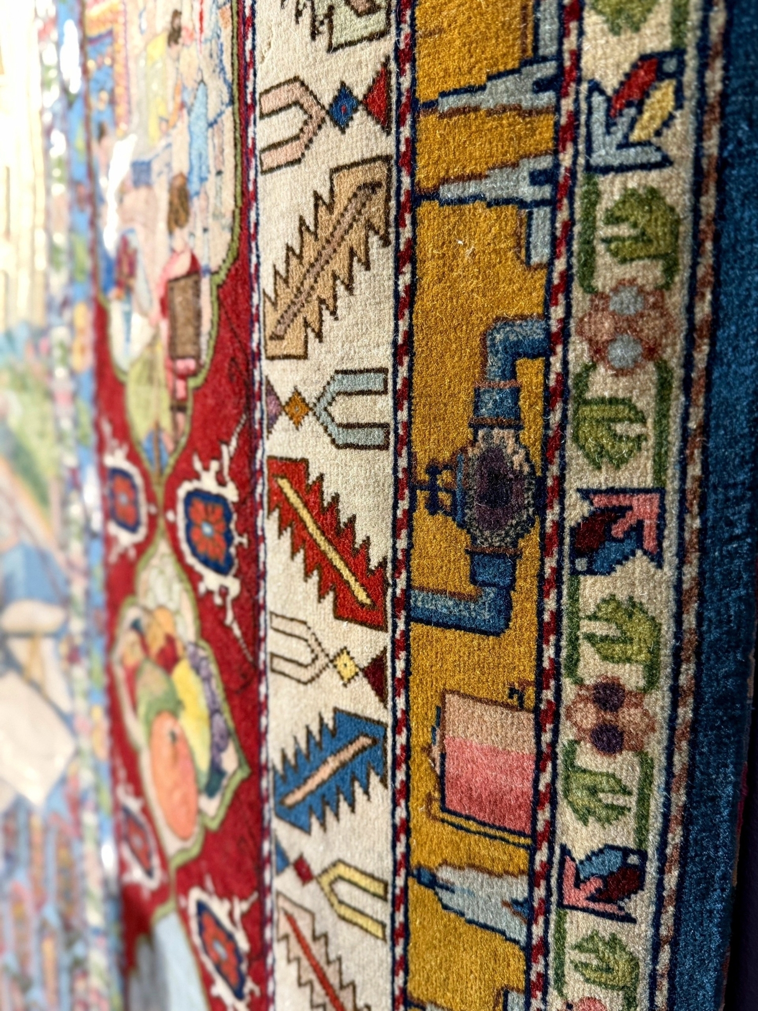 На выставке Изборского музея «Ковёр историй» можно увидеть ковёр «Нефть» – редчайший образец художественного ковроткачества из коллекции Всероссийского музея декоративного искусства. Этот шедевр коврового искусства экспонировался на Всемирной выставке в Нью-Йорке в 1939 году.