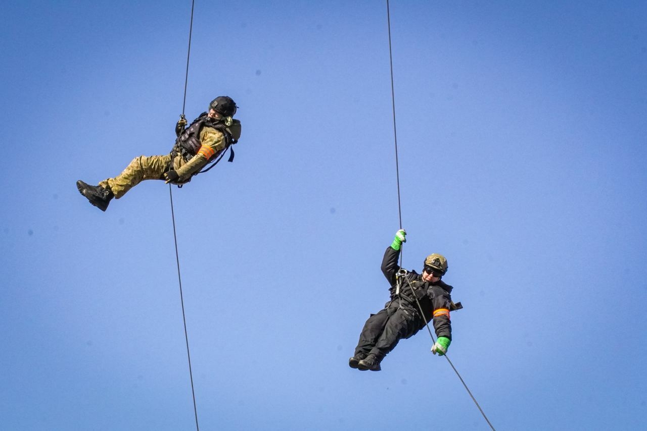 Летчики авиационной эскадрильи, подразделения СОБР и ОМОН Северо-Западного округа Росгвардии, дислоцированные в Пскове, Санкт-Петербурге, Калининграде, Великом Новгороде, Республиках Карелия и Коми отработали беспарашютное десантирование.