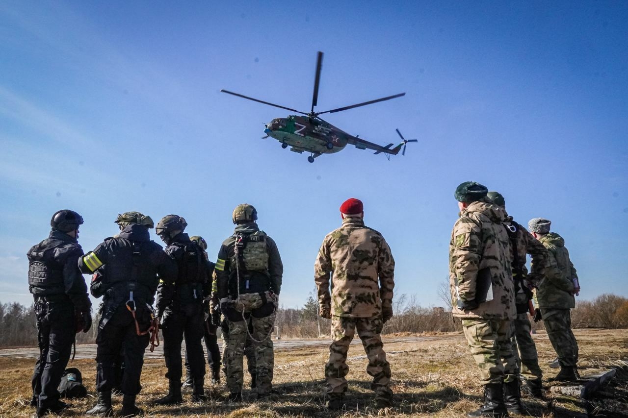 В ходе занятий, проходивших под Петербургом, росгвардейцы десантировались с вертолетов Ми-8 и Ка-226 посадочными и штурмовыми способами с применением альпинистского снаряжения, канатов скоростного спуска, а также выполнили эвакуацию с применением каната.