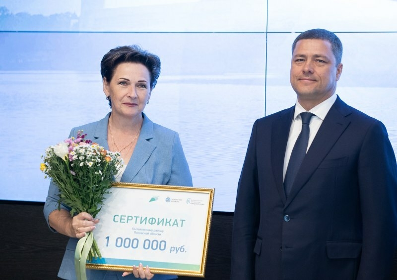 В ходе церемонии были также премированы муниципалитеты, показавшие наилучшие результаты в голосовании. За первое место среди муниципальных районов и городских округов сертификат на 1 миллион рублей на выполнение дополнительных мероприятий по благоустройству территорий вручен Главе Пыталовского района Вере Кондратьевой. Руководители еще 4-х муниципалитетов — Пушкиногорского, Струго-Красненского, Красногородского и Плюсского получили сертификаты на сумму 700, 500, 400 и 300 тыс рублей соответственно.