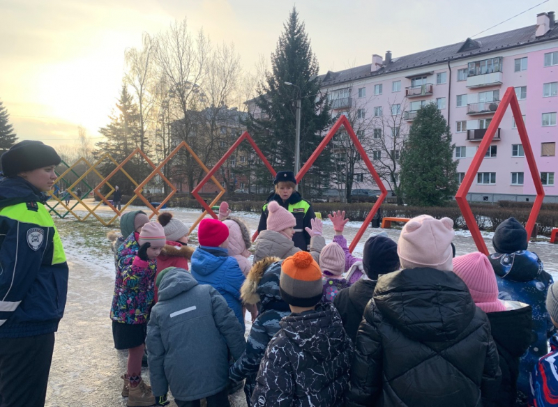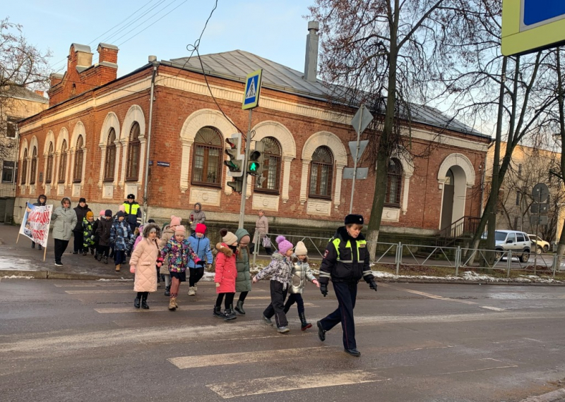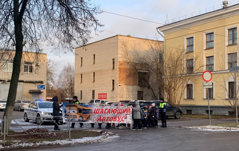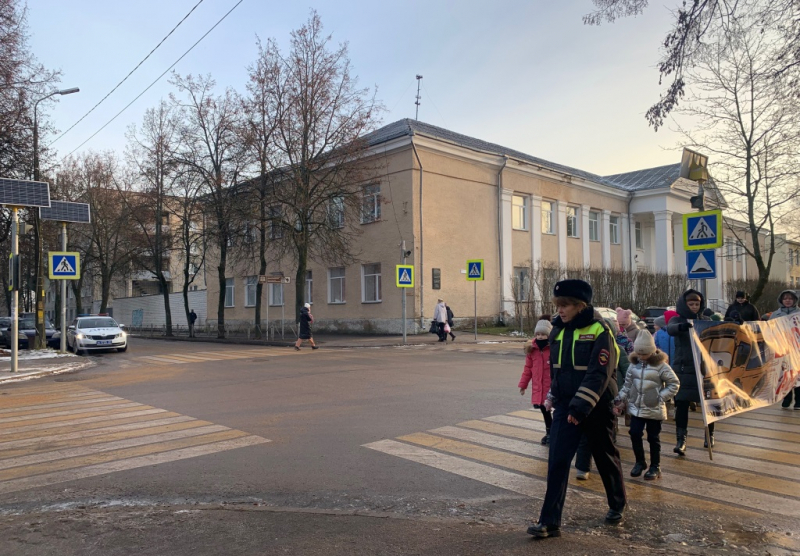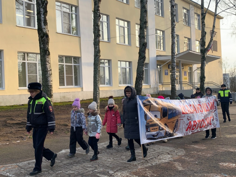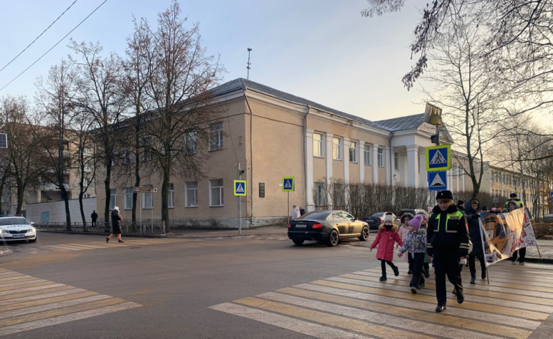 Сотрудники Госавтоинспекции ОМВД России по городу Великие Луки провели с учениками средней общеобразовательной школы № 1 обучающее занятие в формате пешеходной экскурсии «Шагающий автобус».