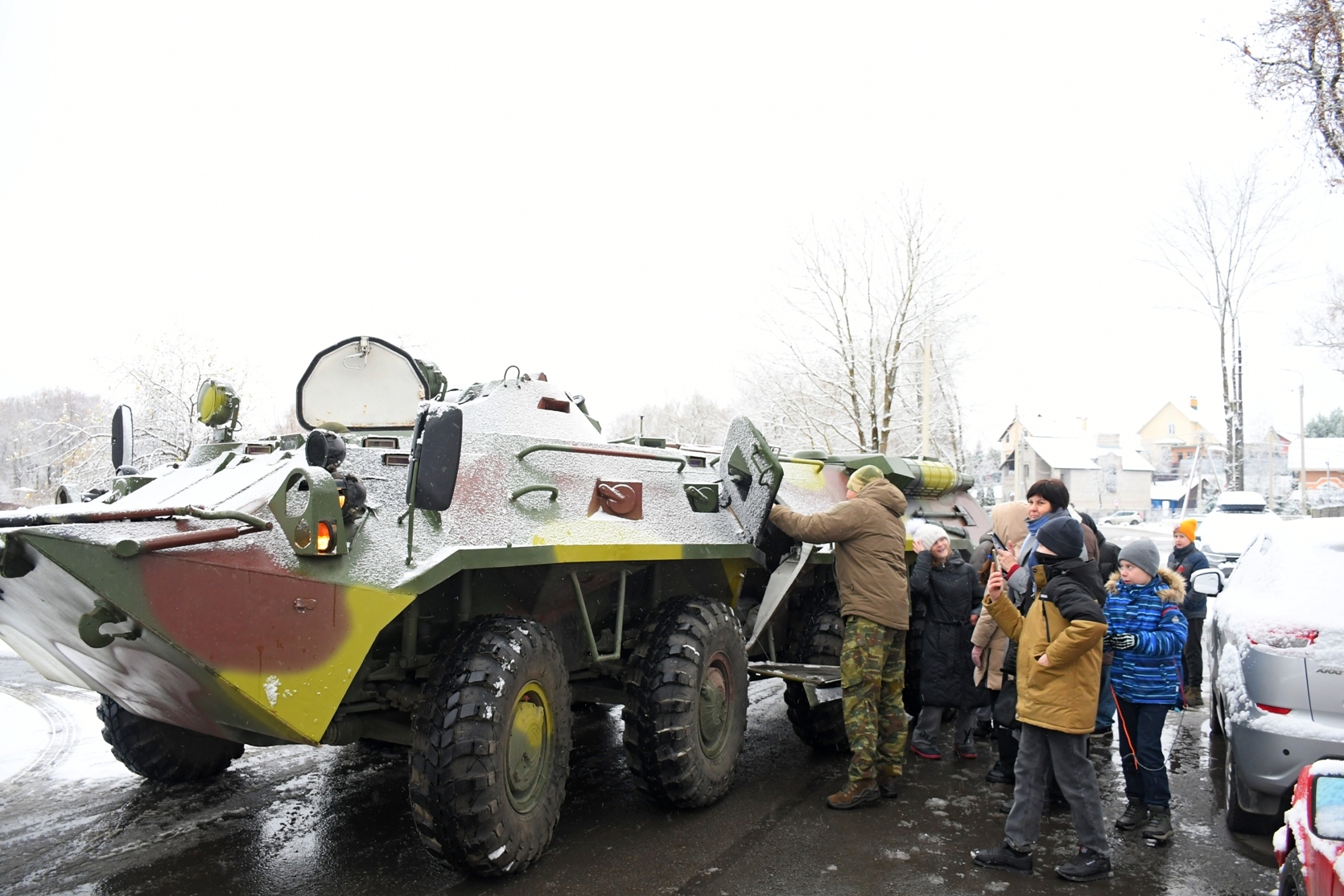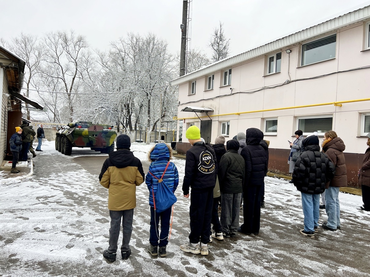 В ходе урока мужества школьникам показали видеоролики о буднях бойцов спецназа, продемонстрировали современную экипировку и вооружение. Ребята смогли примерить снаряжение сотрудников и познакомиться с устройством бронетранспортера, побывав внутри боевой машины.